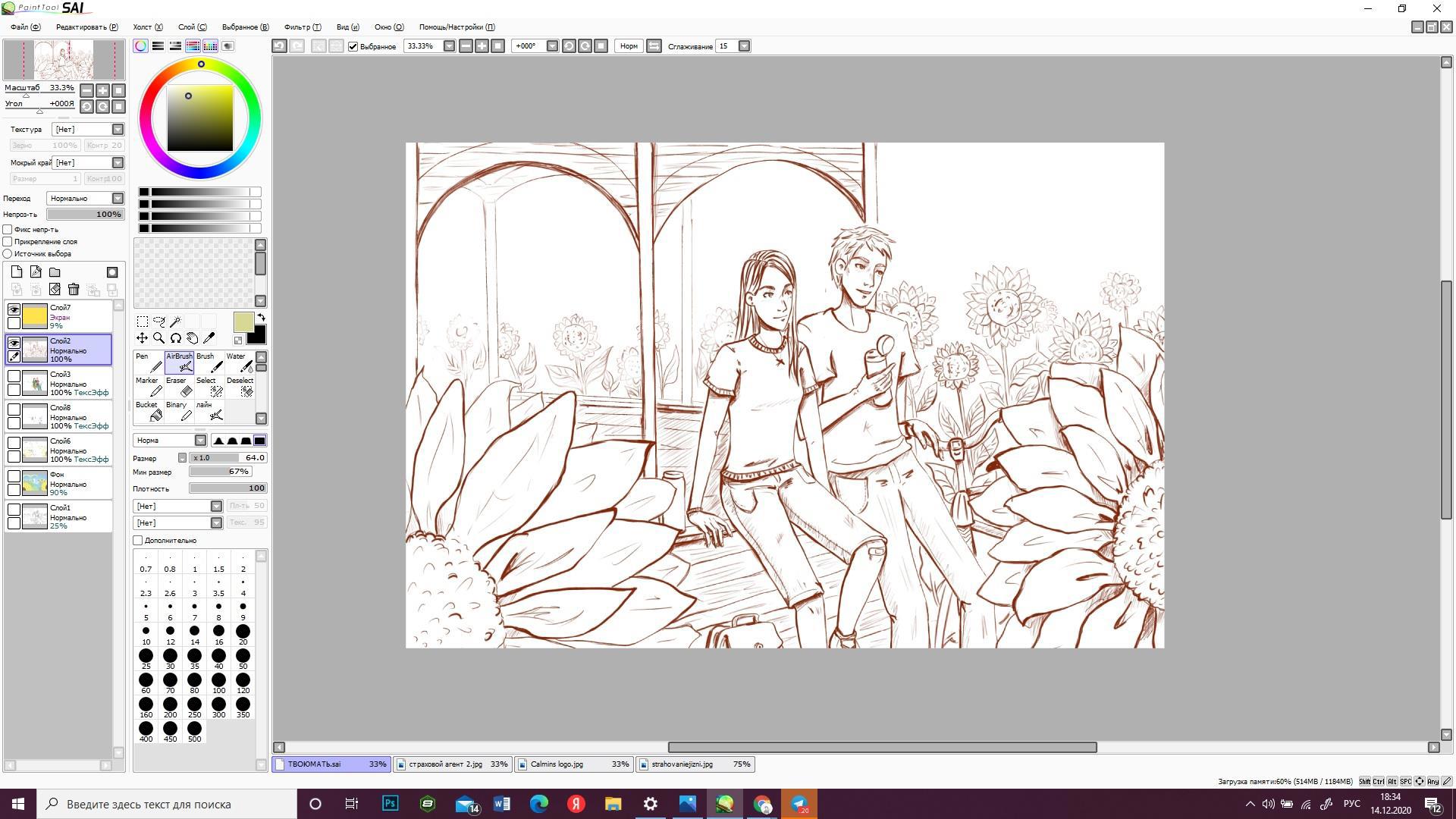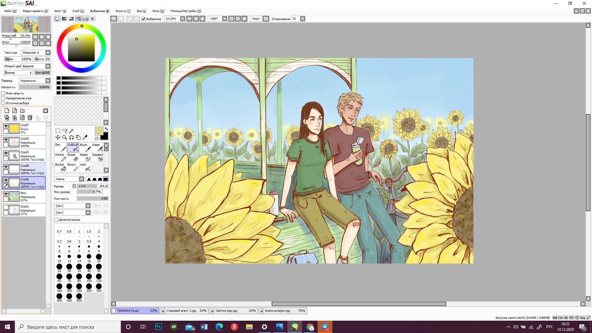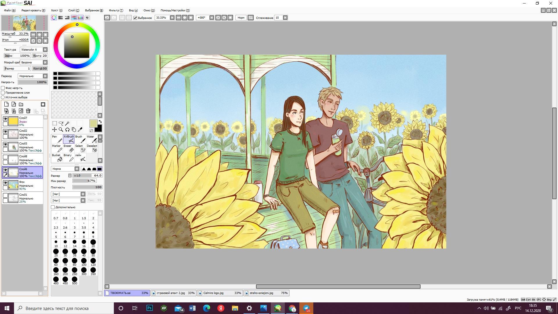 всё, супер, я довольна. очень много штрихов - я график, так что на живопись не претендую и работаю в основном маркером, который у меня мимикрирует под акварель. но сначала я делаю основные цвета фона: в сюжете тут лето, да и подсолнухов куча, так что с цветами гадать не приходится.