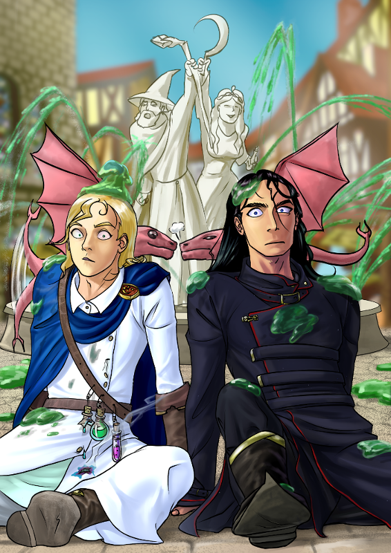 Тёмный, недовольно морщась, попытался отряхнуть липкую субстанцию с бывшего некогда верхом элегантности чёрного камзола с алой оторочкой. Субстанция покидать насиженное, а точнее, налепленное место, отказывалась. Светлый оказался в столь же плачевном положении. Если с серебряного нагрудника слизь стекла, как по маслу, то в широкие белые рукава и брюки она впиталась с надёжностью голодного клеща. Оба мага с ненавистью воззрились друг на друга. Воздух заискрился от накапливаемой волшебной мощи...