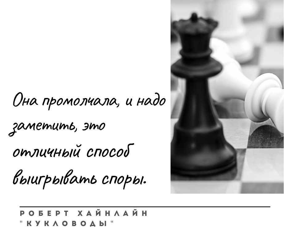 И - цитата из "Кукловодов" Роберта Хайнлайна. Люблю книги Хайнлайна и "Кукловоды" среди них на особом месте. Даже не могу сказать - почему. Не первая книга, которую я прочла у автора... Так получилось. А вот экранизацию, к сожалению, практически не запомнила. Хотя четко помню Дональда Сазерленда в роли Старика... пересмотреть, что ли)