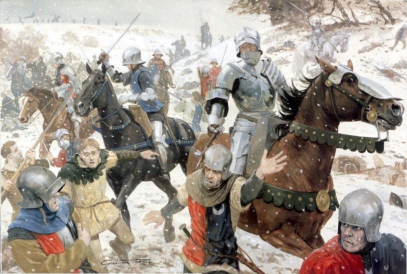 Автор: Дмитрий DMПишу главу к моему роману «Контрабандисты времени» посвященную печальной истории рыцаря по имени Роберт де Аркур Амбле. В главе есть несколько батальных сцен. Иногда сложно представить себе, как все происходило на самом деле в XV веке, хотя фантазия рисует в голове множество образов. Все же ментальность XXI века дает о себе знать. Поэтому, скорее всего, важно не ошибиться в чем-то…. И вот в помощь идут работы художников. Например, замечательного художника Грэма Тернера выпускника Амершемского колледжа искусства и дизайна. Замечательные картины не только в плане исторической достоверности, но и в плане помощи в визуализации литературных образов. Эти картины помогли моей фантазии представить некоторые сцены сражений более детально. Да это заняло много времени, но это стоило того.
