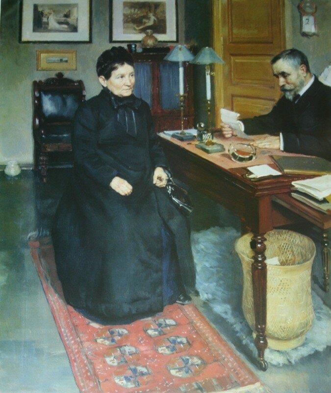 Или вот еще, из любимых – «Просительница», 1880-е. Наверное, вечный для России типаж, такие и сегодня в любой очереди в пенсионном фонде сидят.
