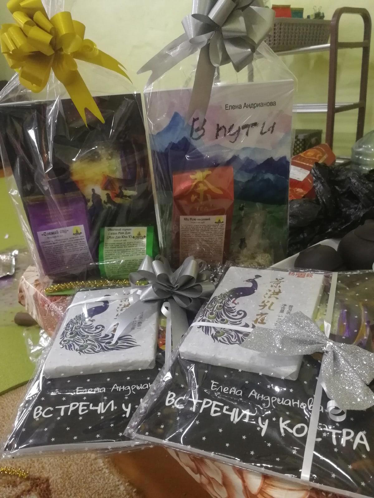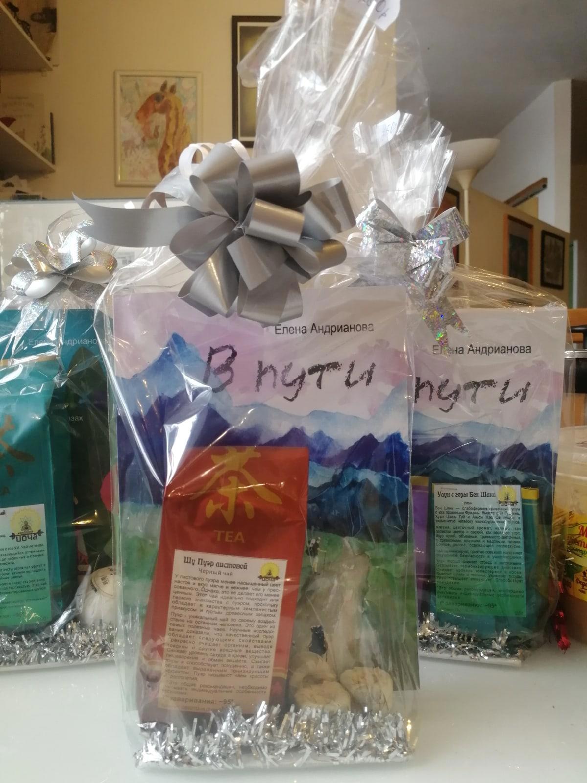 В каждом таком празднично оформленном пакете моя трансформирующая, художественная, раскрывающая книга о путешествиях с новогодним пожеланием и автографом и высококачественные китайские чаи.
