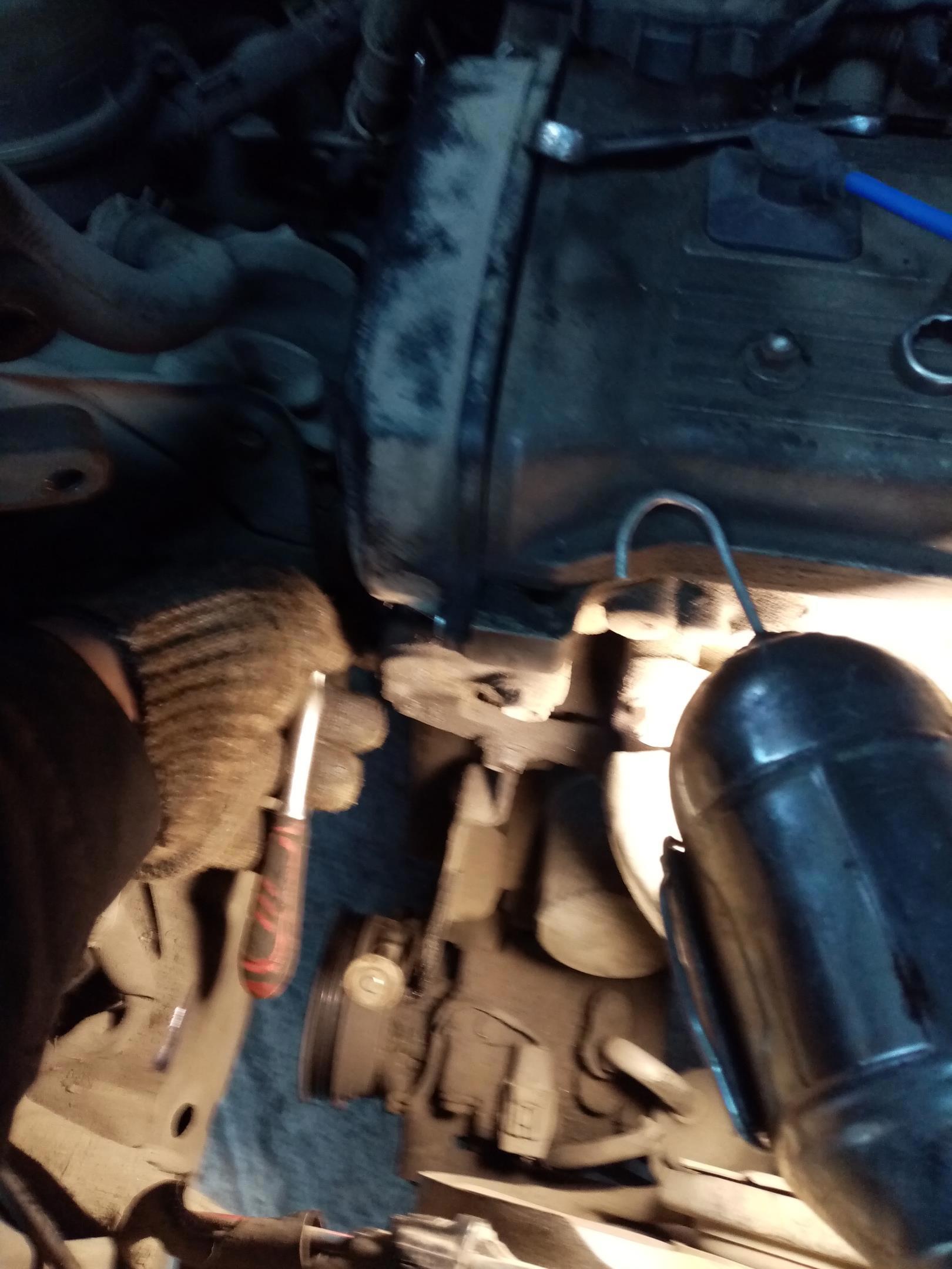 Мотор 5Е-ФЕ хоть и не большой, но блин места в лобовине мало, да ещё есть и подлые болты, крепящие крышки ГРМ. Один прячется за подукой двигателя, подлезть можно только накидным ключем, благо инженеры изобрели накидуху с трещоткой. Второй такой подлец прячется за ухом крепления компрессора гидроусилителя руля. Привет! Подлезть только трещоткой сняв насос.
