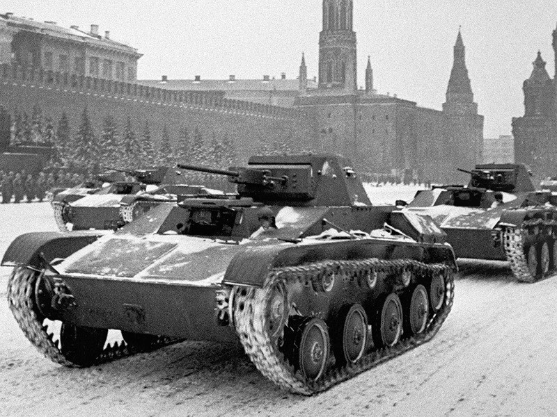 Эти машины прошли в легендарном параде в Москве 7 ноября и именно на этих танках наши танкисты громили немцев под Москвой в 1941 году.