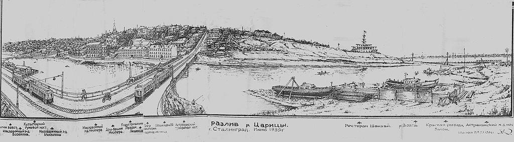 Затем в Город пришла война... Деревянный "Шанхай" сгорел сразу же - 23 августа 1942 года - он не мог противостоять бомбам... А фундамент - тот самый, построенный ещё в шестнадцатом или семнадцатом веке - остался. И в крепости его не сомневались ни жители Города, в 1942-м прятавшиеся от бомб в пойме Царицы под ним, ни фашистские офицеры, в 1943-м устроившие там мощный оборонительный дот, а после окончания Сталинградской Битвы старый фундамент послужил для временного госпиталя для раненых пленных...