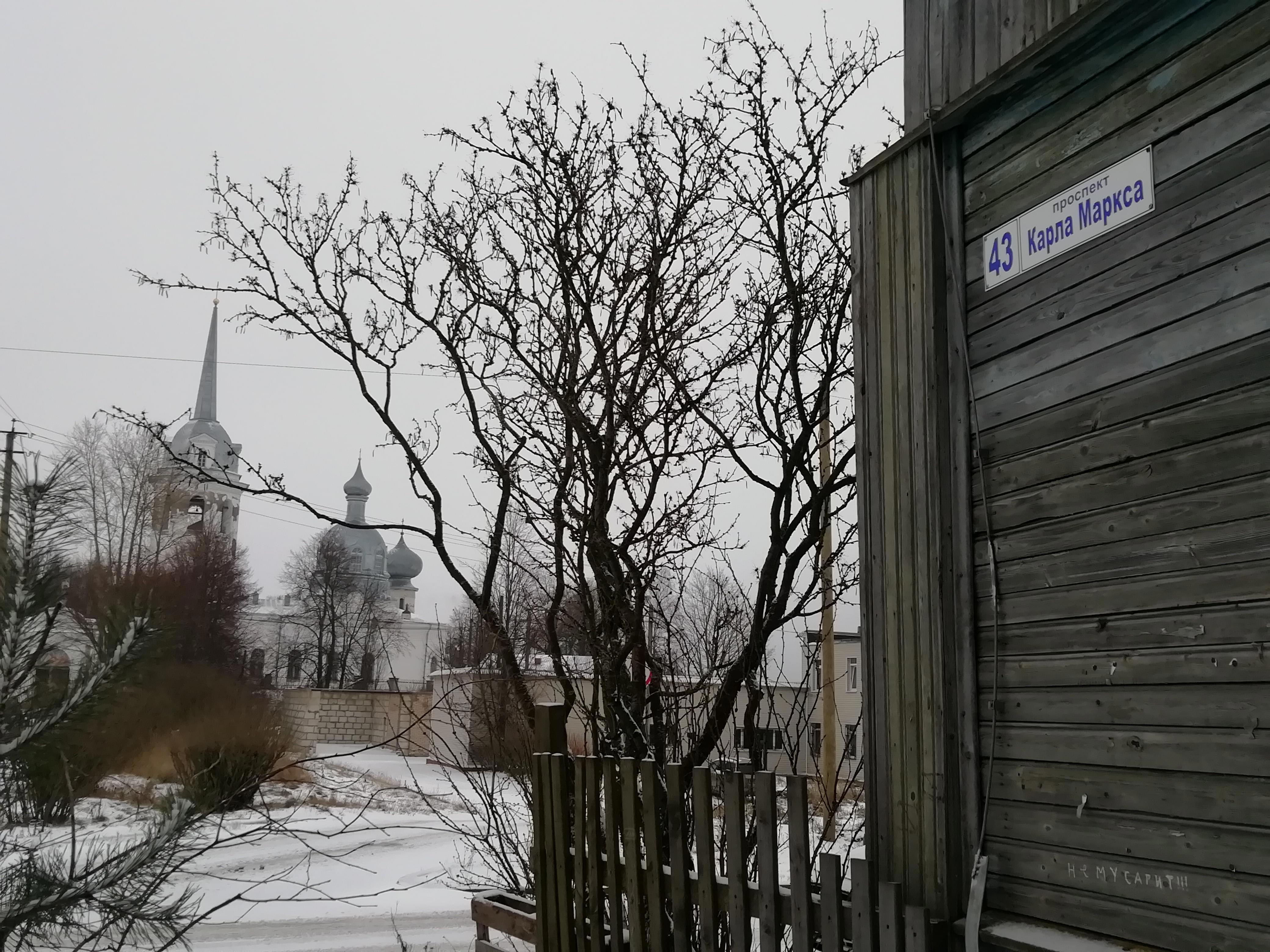 Обратило на себя внимание сочетание - церковь, улица Карла Маркса и выцарапанная надпись на доме...