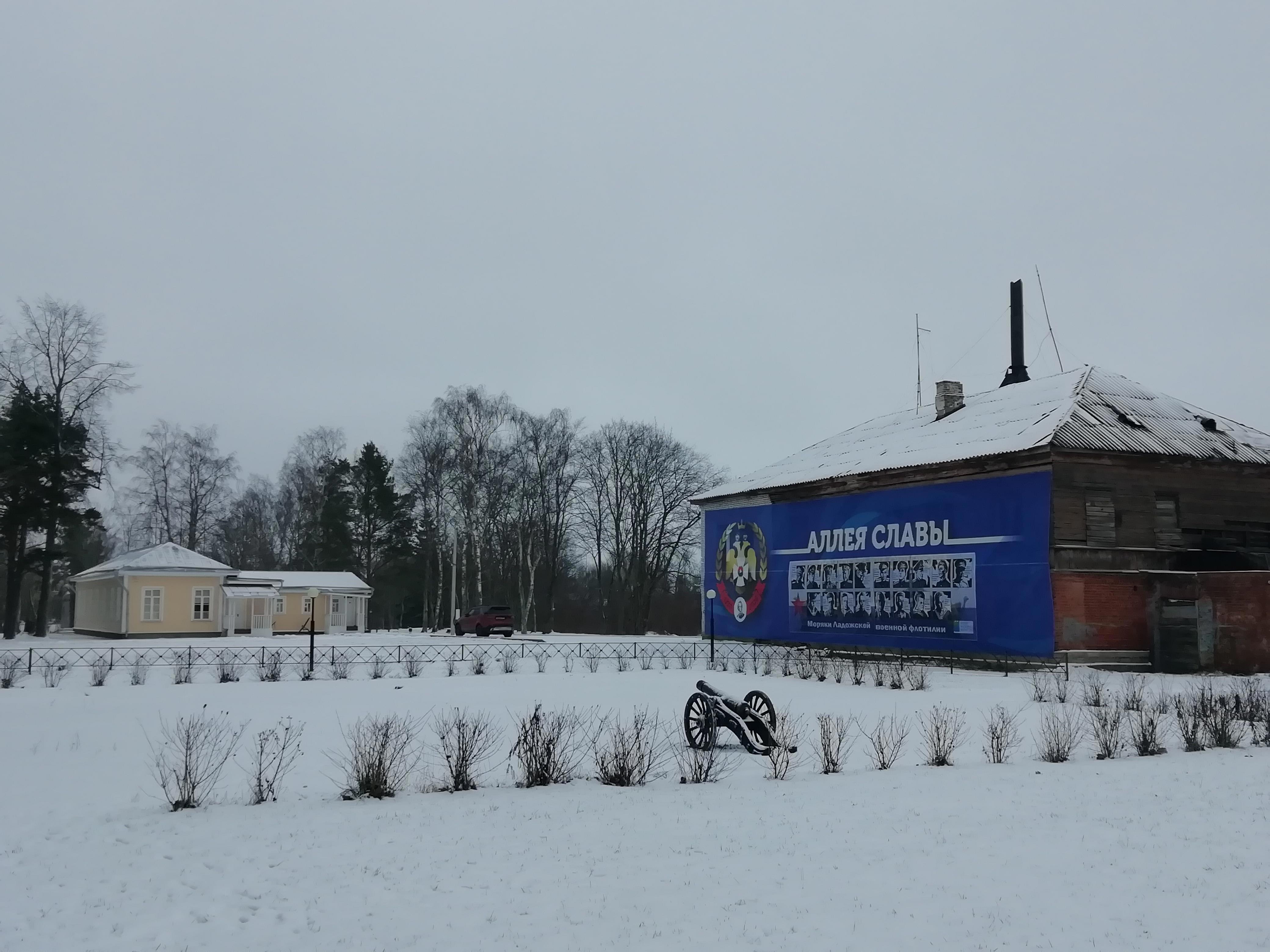 При должном подходе из городка можно сделать центр туризма. Кстати, Дорога Жизни тоже проходила здесь - грузы, шедшие по реке Волхов, тут перегружались на озерные баржи. И мемориал речникам есть, здесь стоит тральщик, отличившийся в бою за остров Сухо.