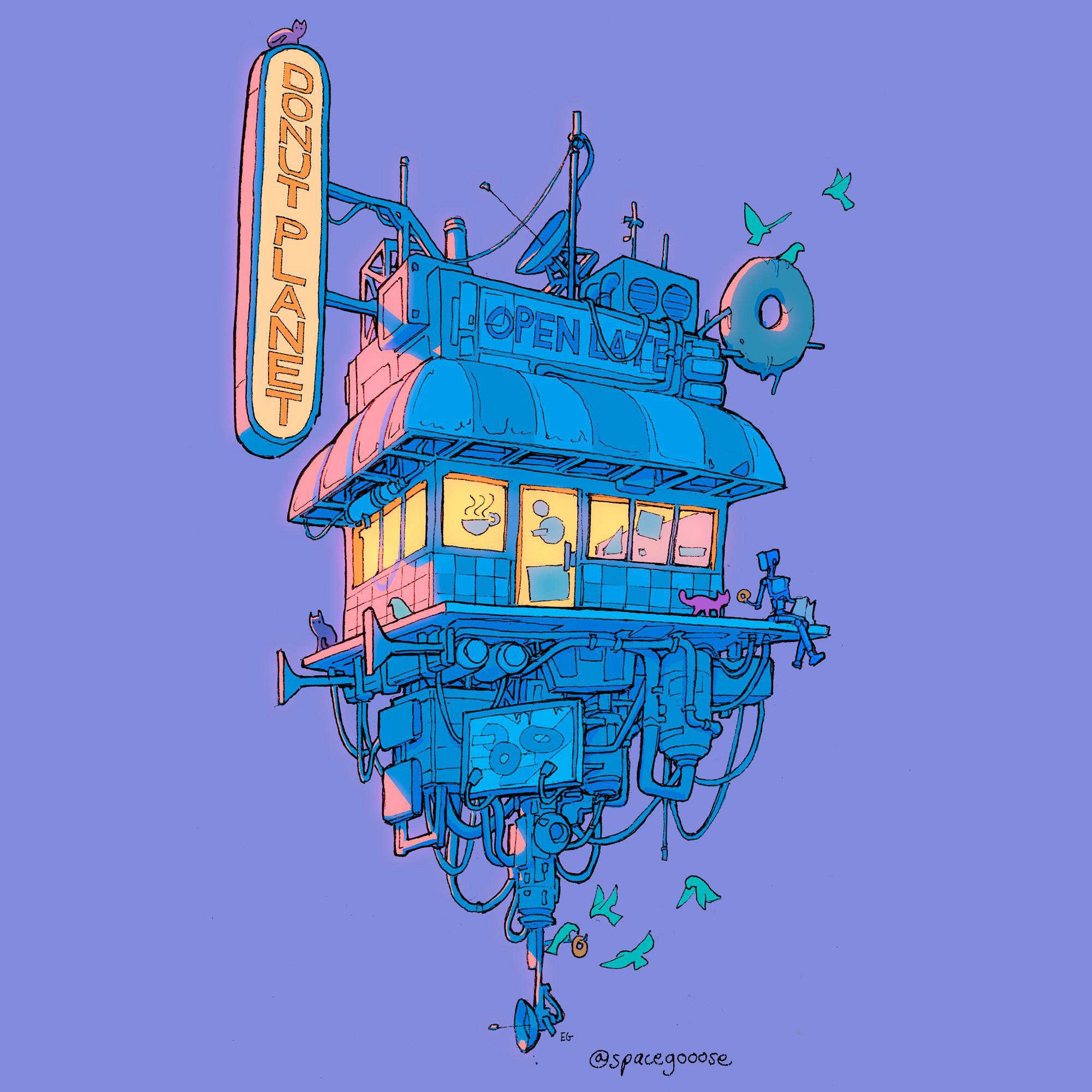 Сцена в стареньком космическом супермаркете с кучей инопланетян: