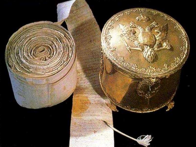 P.S. Ради пущей наглядности ниже вот вам фото свитка Соборного уложения 1649 года и футляра для его хранения…
