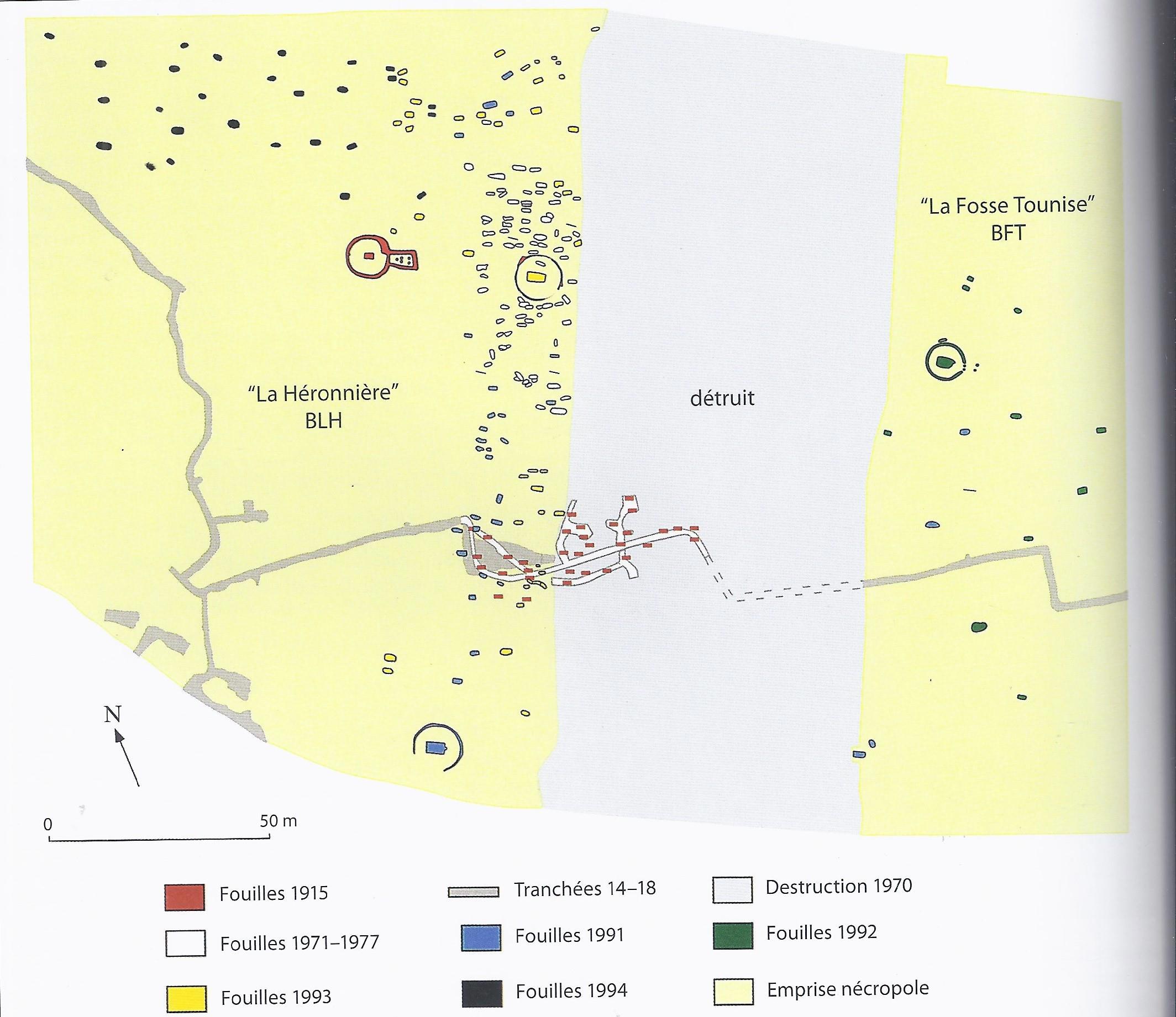 Было раскопано 235 могил (из примерно 350 существовавших здесь до ПМВ). Все найденное - в Музее Суассона.