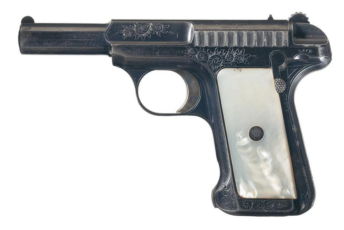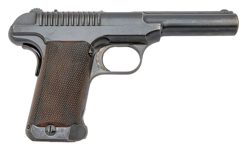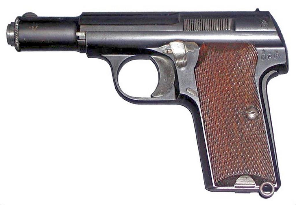 Очень удобная машинка и достаточно мощная для стрельбы в упор. Но человек родом из начала двадцатого века взял бы такой скорее всего исключительно «на безрыбье». Если же он обладал бы свободой выбора, то скорее всего куда больше внимания уделил бы изделиям Браунинга. Например, взял бы вот такой Browning FN калибра 6,35 мм: