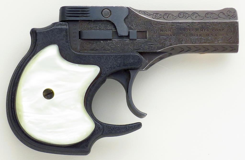 И в этой теме есть свои лидеры, исключения и оригиналы. Первым пистолетом «жилетного» класса, который приходит в голову — это, разумеется «вечный» Derringer. Хотя тут тоже, как сказать. Ведь «деринджер» хотя не только «вечный», но и многоликий одновременно. Например, если речь идёт о 19 веке, то начиная с 1830 года в наличии имелся вот такой двухствольный Derringer High Standard DM-101: