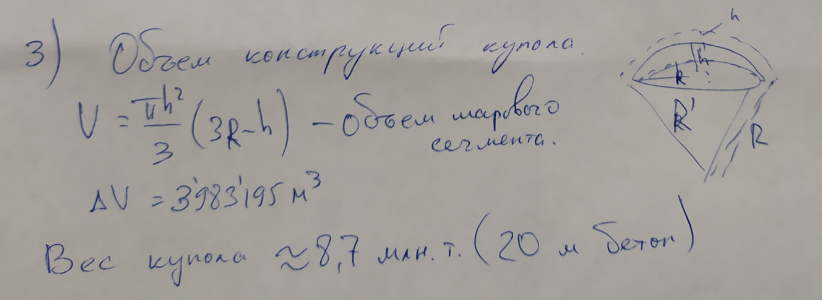 В качестве извинения принес пару формул - когда будут строить город - пригодится. Нагрузку собрать, вес купола прикнуть.