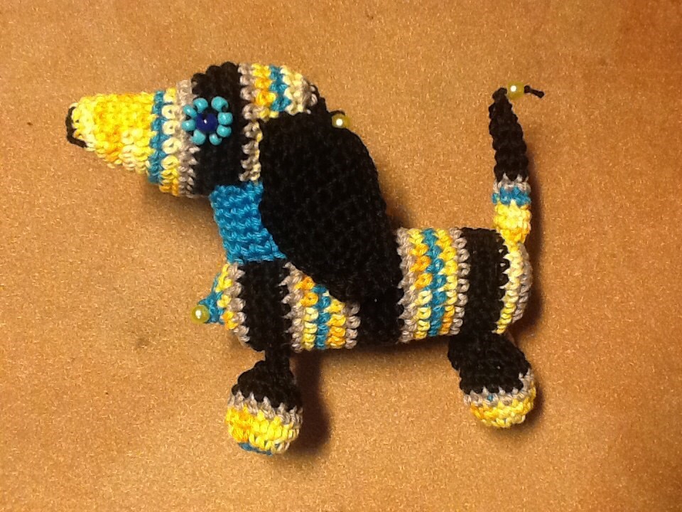 Вот, например вчера доделанный таксик 15 см тельце: