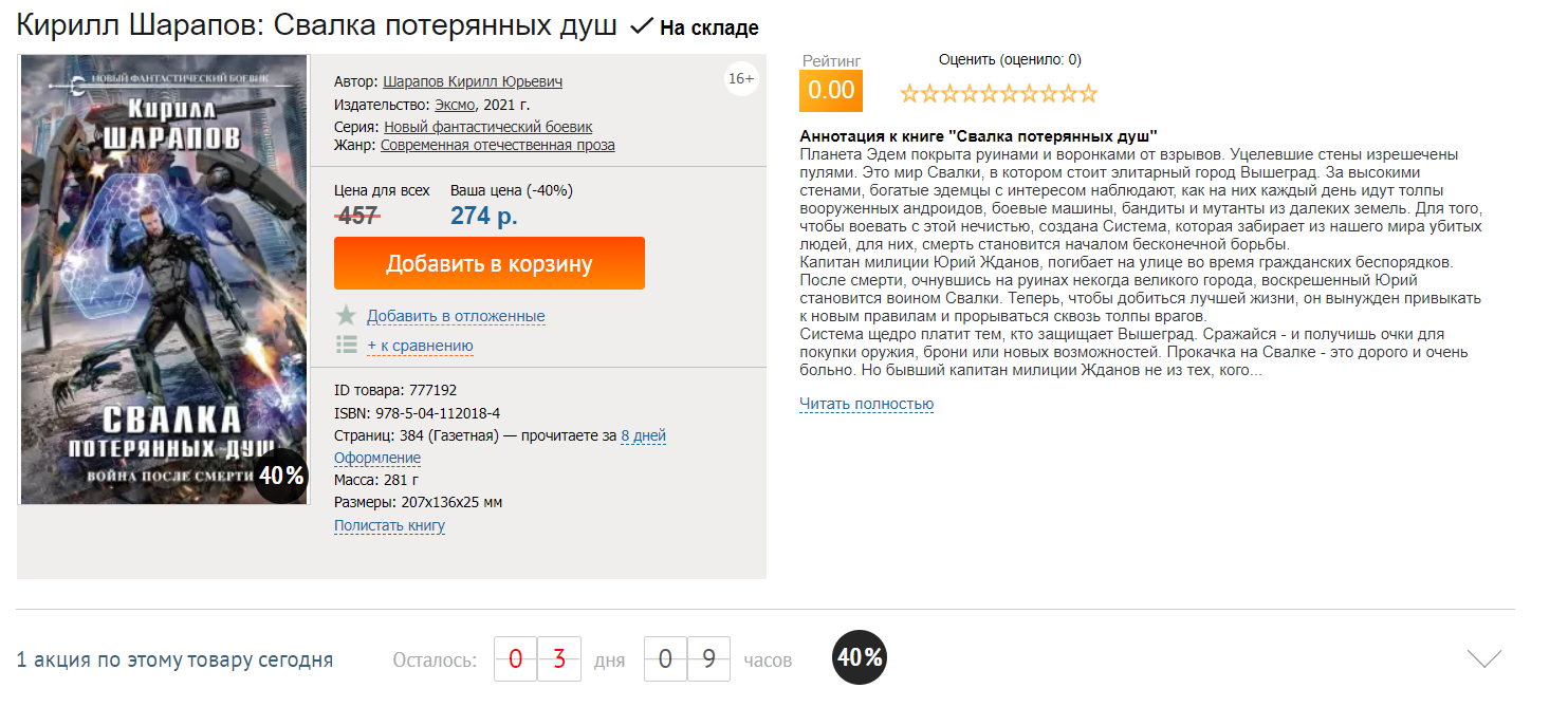 Автор: Кирилл ШараповСвершилось, стартовали прямые продажи вышедшей в бумаге первой книги из цикла Свалка. Правда издательство как всегда отличилось и теперь это называется Свалка потерянных душ. Ну да это как обычно. Так что кого интересует эта книга в бумаге марш на лабиринт там сегодня даже вроде скидка неплохая, ссылку как всегда размещу внизу.