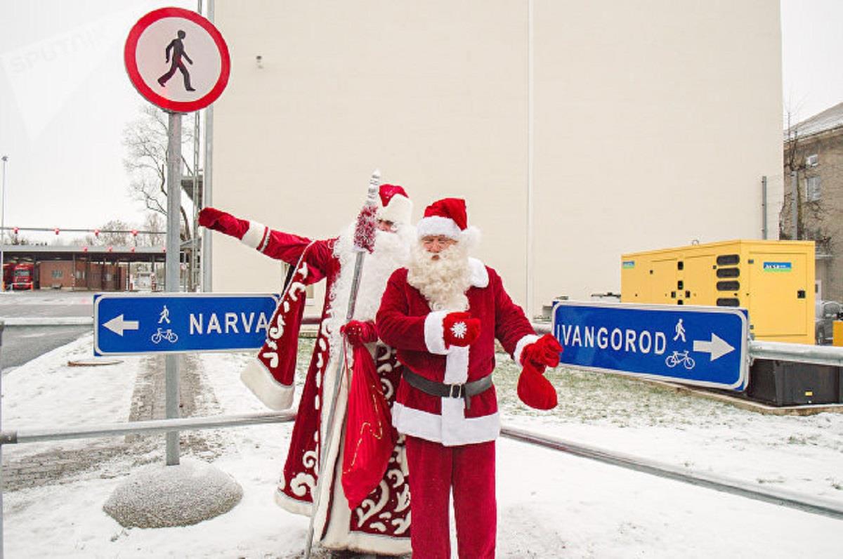 Оказывается, эстонский старец по примеру европейского Санта-Клауса на голове носит остроконечный колпак, одет в теплые куртку и штаны, а русский Дед Мороз носит боярскую шапку и одет в шубу. Кроме того, у Деда Мороза в руках посох, да и борода у него длинная.