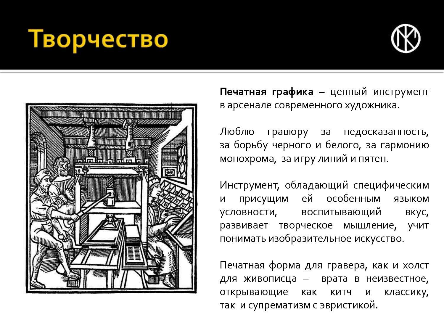 ¡Создатель более 70 авторских гравюр, принимал заказы на обложки к музыкальным альбомам, читал лекцию по печатной графике в РГУ им. Косыгина, провожу собственный мастер-класс «ПО СЛЕДАМ ПЕРВОПЕЧАТНИКА», принимал участие в возведение ледяных скульптур в ГМЗ «Ростовский Кремль». Более 200 эстампов лимитированного тиража хранятся в частных коллекциях и фондах (Россия, Италия, Франция, США, Германия, Нидерланды). Работы художника можно встретить в музее стрит – арта С-Петербурга, в Набережночелнинской галерее, в совете по культуре посольства Королевства Нидерландов.в Москве.