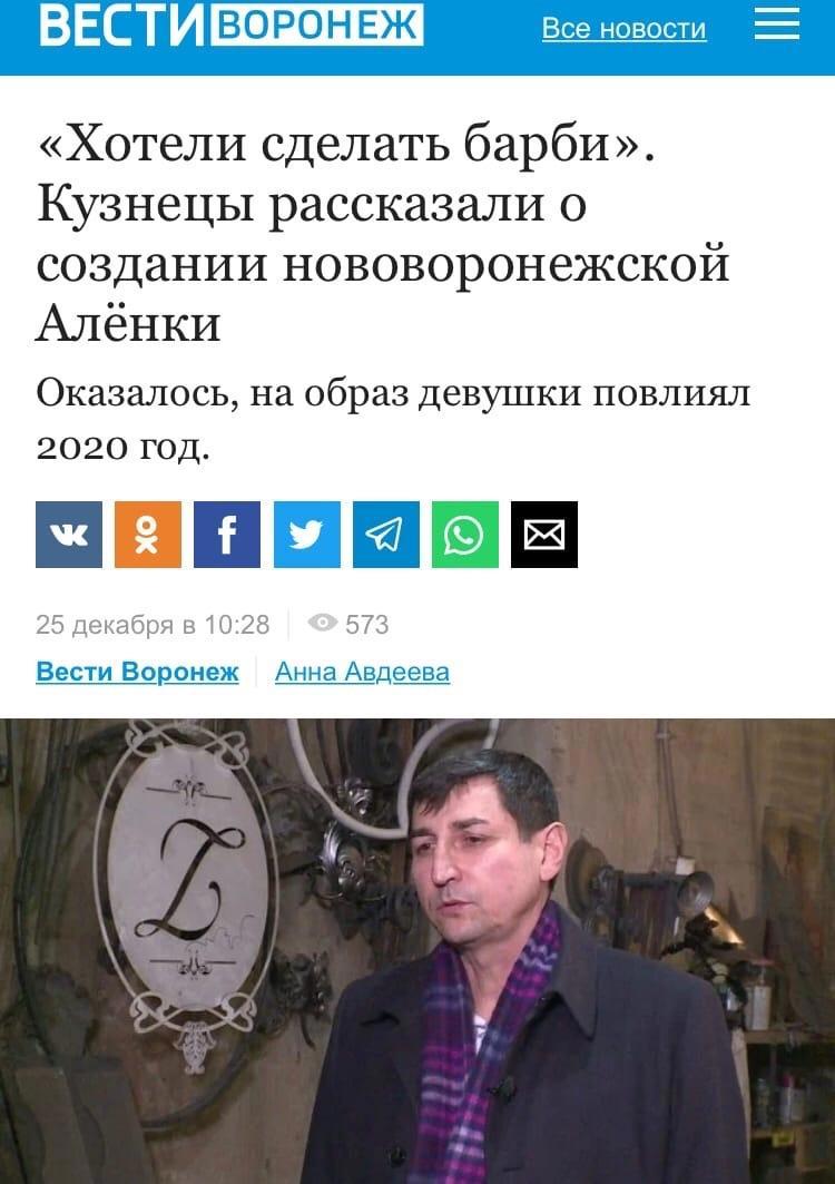 "...– Эта крестьянка нашла поляну и увидела в ней то место, в котором может себя показать более достойно. И когда мы создавали этот образ, мы были впечатлены 2020-ым годом, поэтому так выразили свои чувства. Мы сознаёмся в этом. Поэтому выражение лица Алёнки – это её недовольство, и наше восприятие 2020 года, которое мы перенесли на этот облик, – признаётся Владимир Пилипенко.