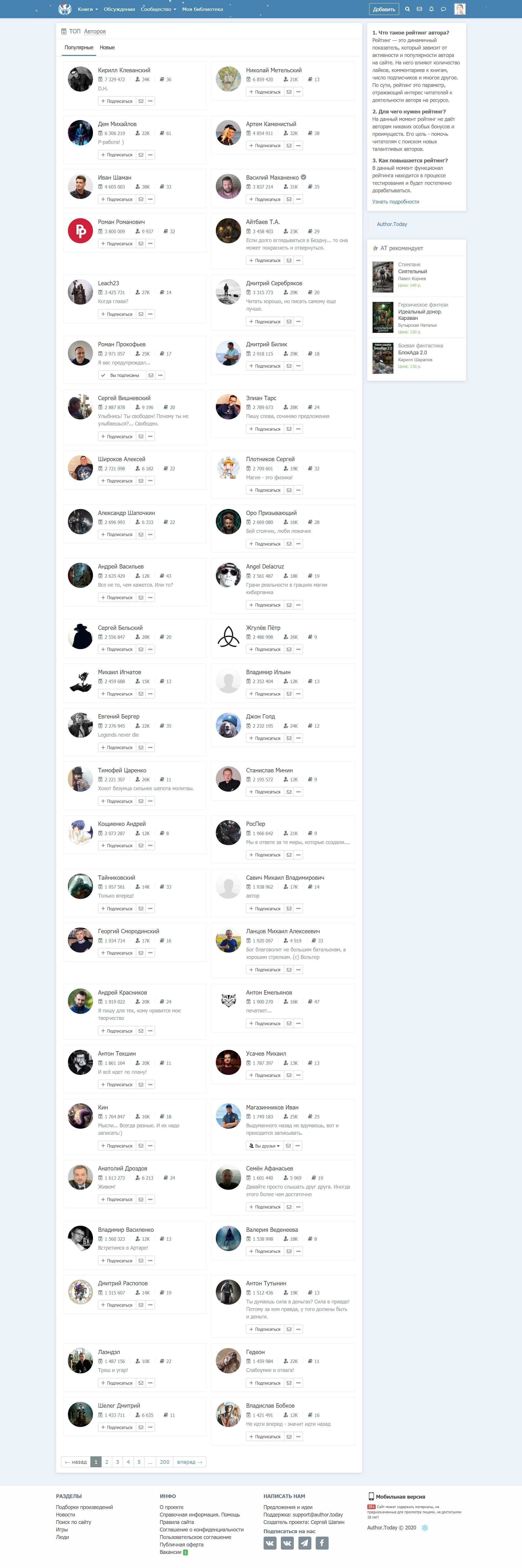 Итак, по состоянию на 25 декабря 2020 топ50 авторов по авторскому рейтингу выглядит следующим образом.