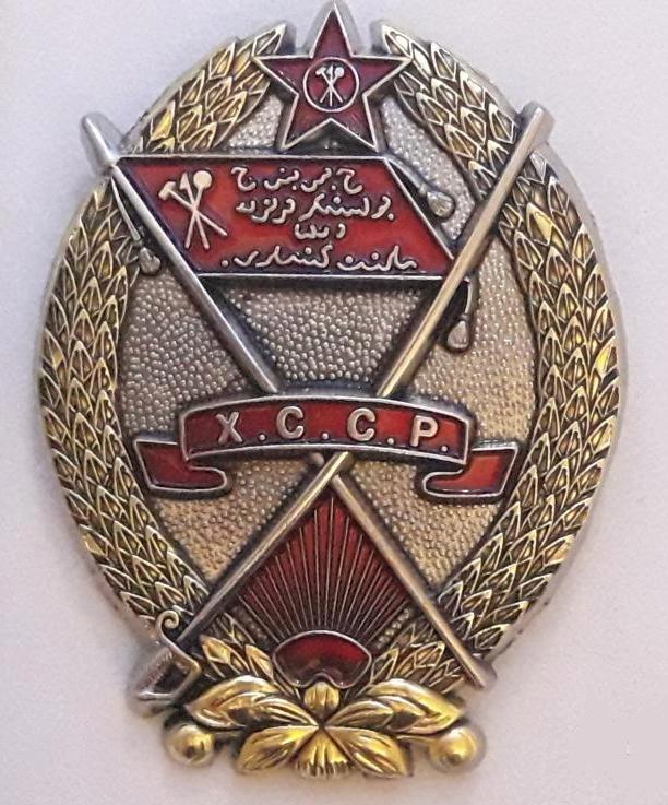 Говорят, что наградное оружие в России существует не меньше, чем 400 лет. Не знаю – может и больше. Но при царе оружием награждали даже тогда, когда уже существовали ордена и медали. Когда к власти пришли большевики, с наградами возник определённый провал. То есть царское и даже времён «временного правительства» отменили, а новое появилось не сразу. Потом появился «Орден Красного Знамени» и первый достался Блюхеру, но пока дело не устаканилось разброд в этом деле существовал просто колоссальный. Отсюда и всякие отклонения типа «… награждается красными революционными шароварами». Кстати, это была не шутка и не преувеличение. Такое тоже было. Были и ордена местного значения. Вот такой немного необычный «Орден Красного Знамени Хорезмской Советской Социалистической Республики» (копия):