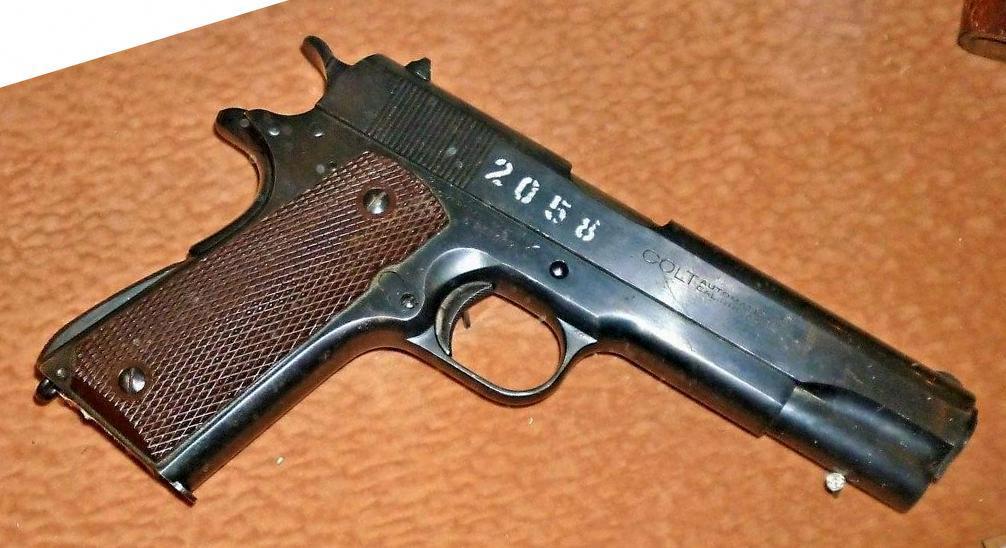 Опять же, с другой стороны, были и случаи обратные, так сказать. Вот поехала в США в 1942 году одна из наших самых суровых (но очень красивых) барышень. Это была не кто-нибудь, а сама Павличенко, которая имела к тому моменту на своём счету уже очень много десятков убитых гитлеровцев. Приехала и задала тамошним «джентльменам» прямой вопрос: «… долго собираетесь прятаться за моей юбкой?» Джентльмены приняли во внимание суровый характер гостьи и подарили ей вот этот «Кольт 1911» сорок пятого калибра без всяких лишних штучек: