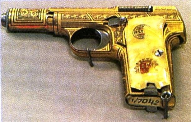 Хотя часто встречаются необычные образцы. Вот «Маузер 1910» калибра .25 (6,35 мм), которым был награждён один ответственный партийный работник на Украине: