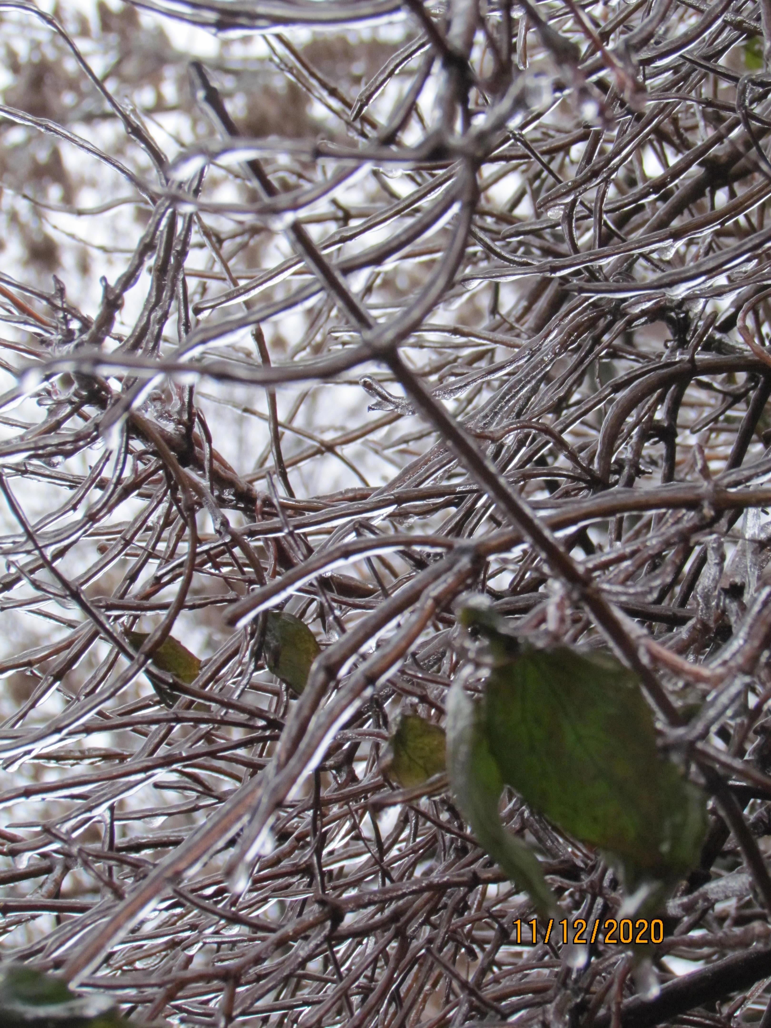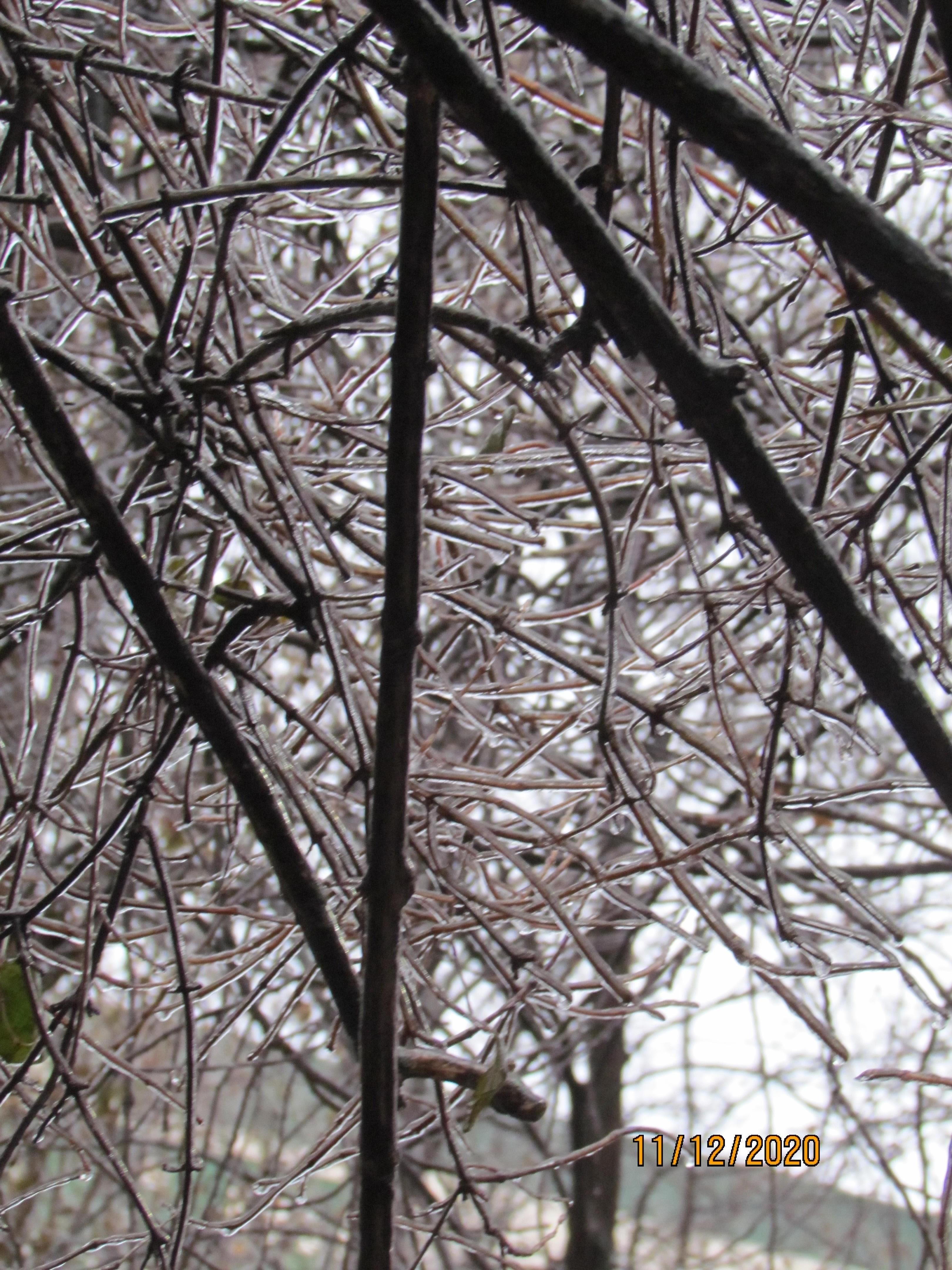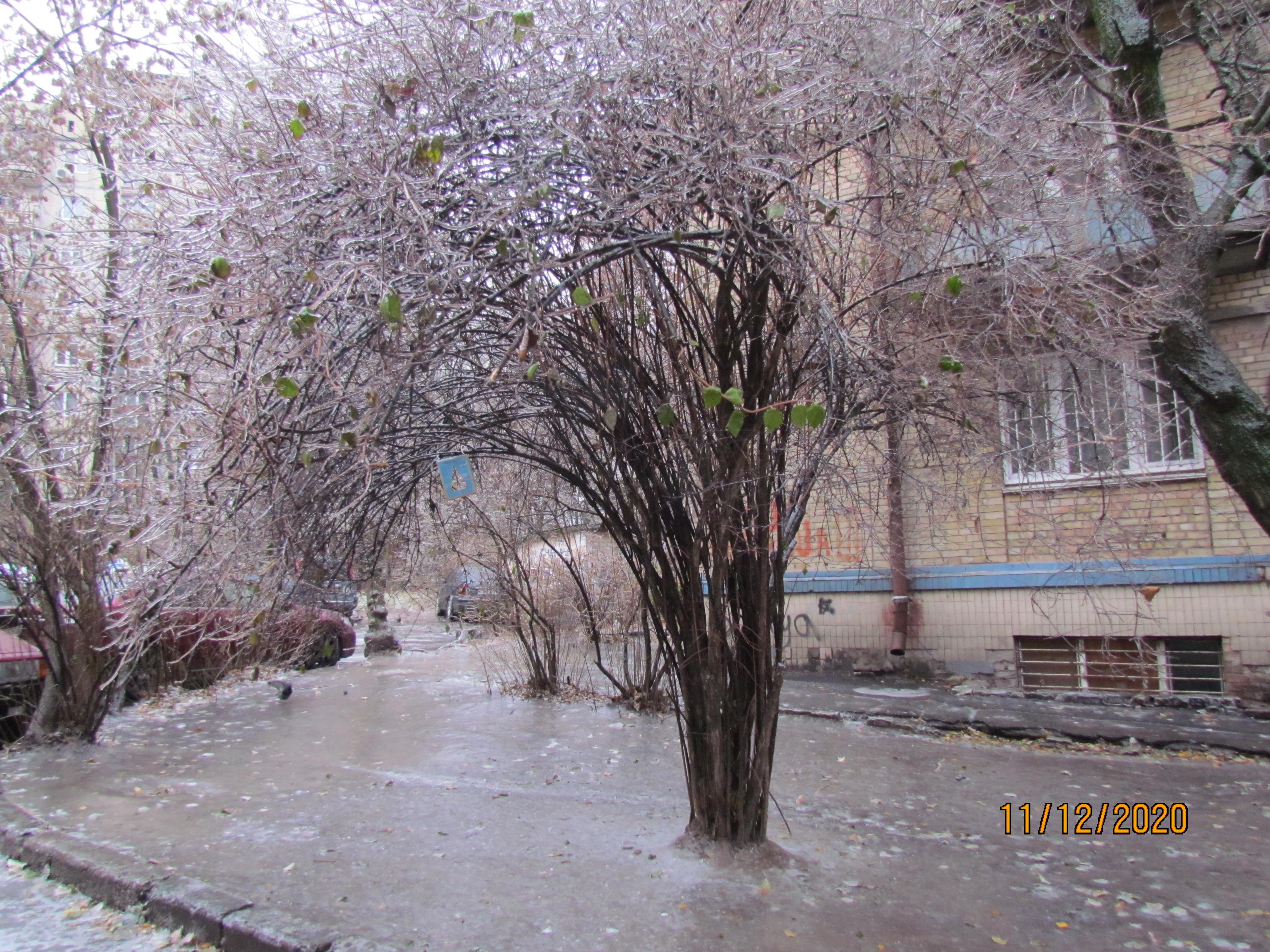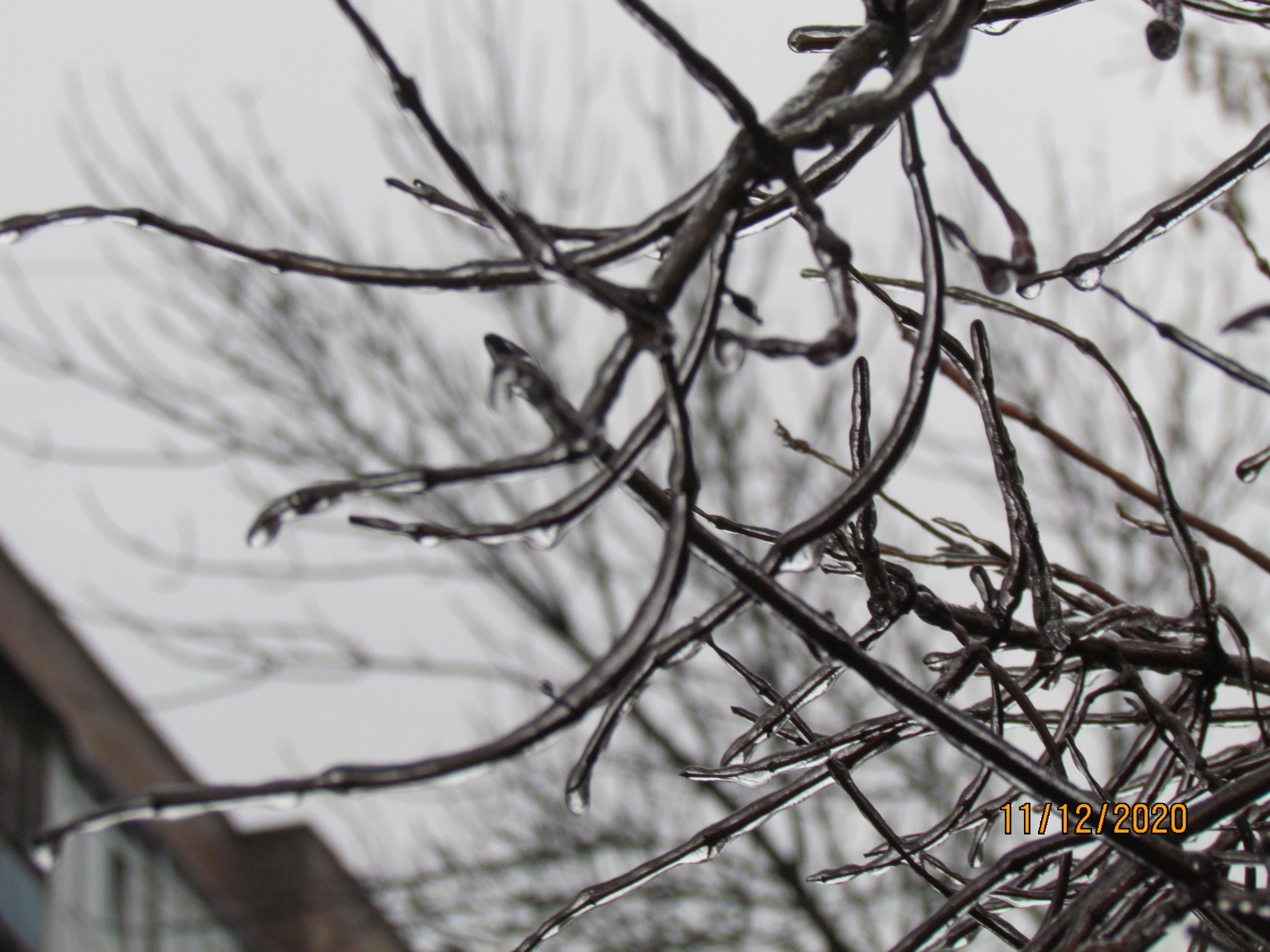 Декабрьский гололёд, хрустальные кусты-древеса.