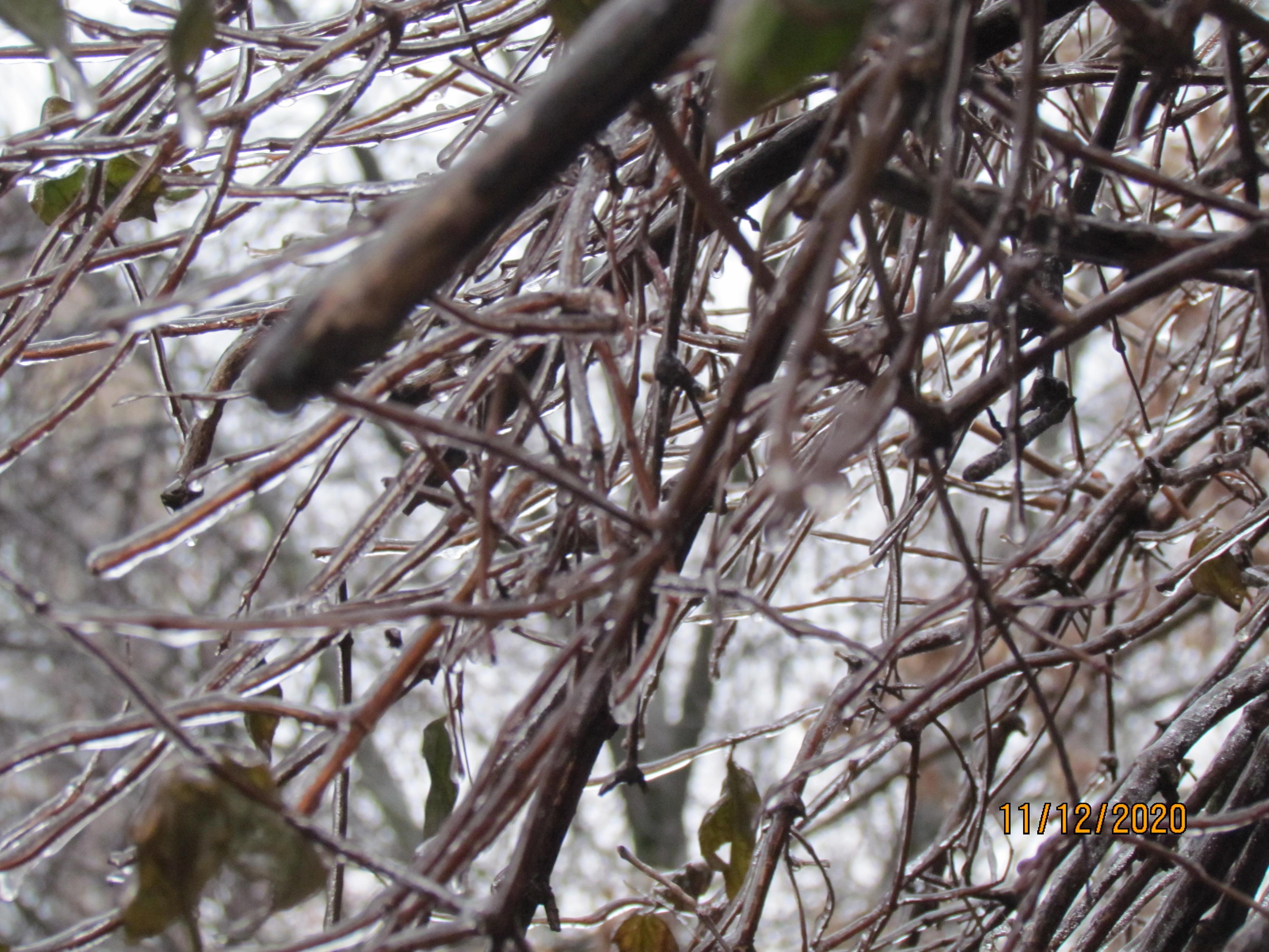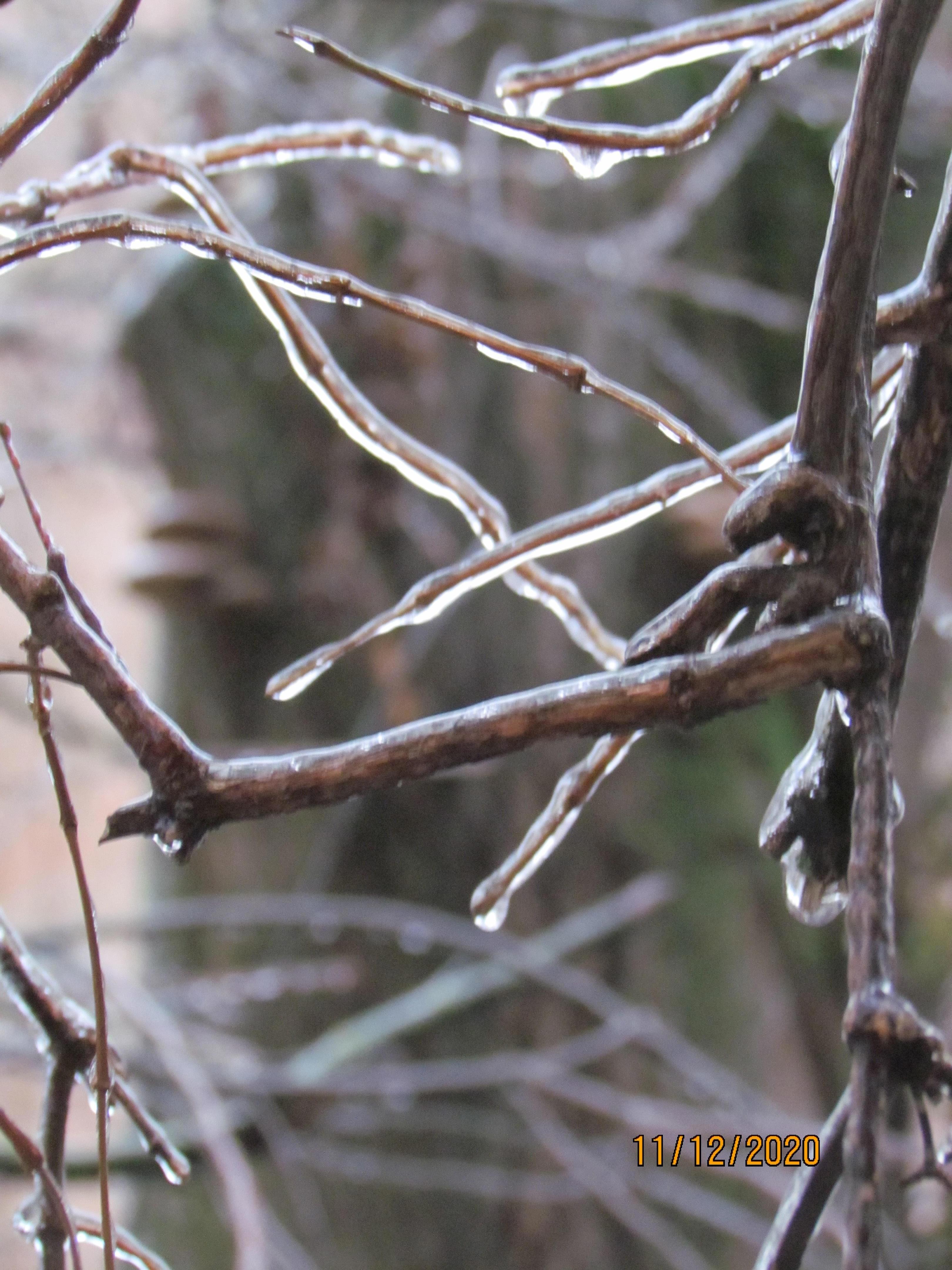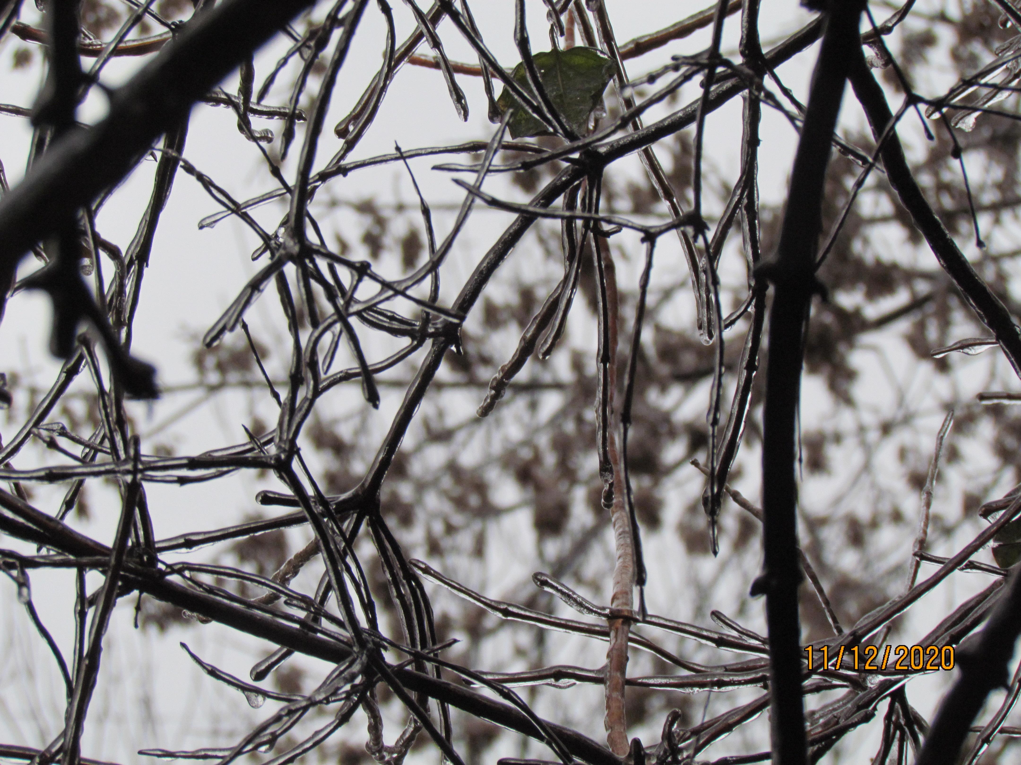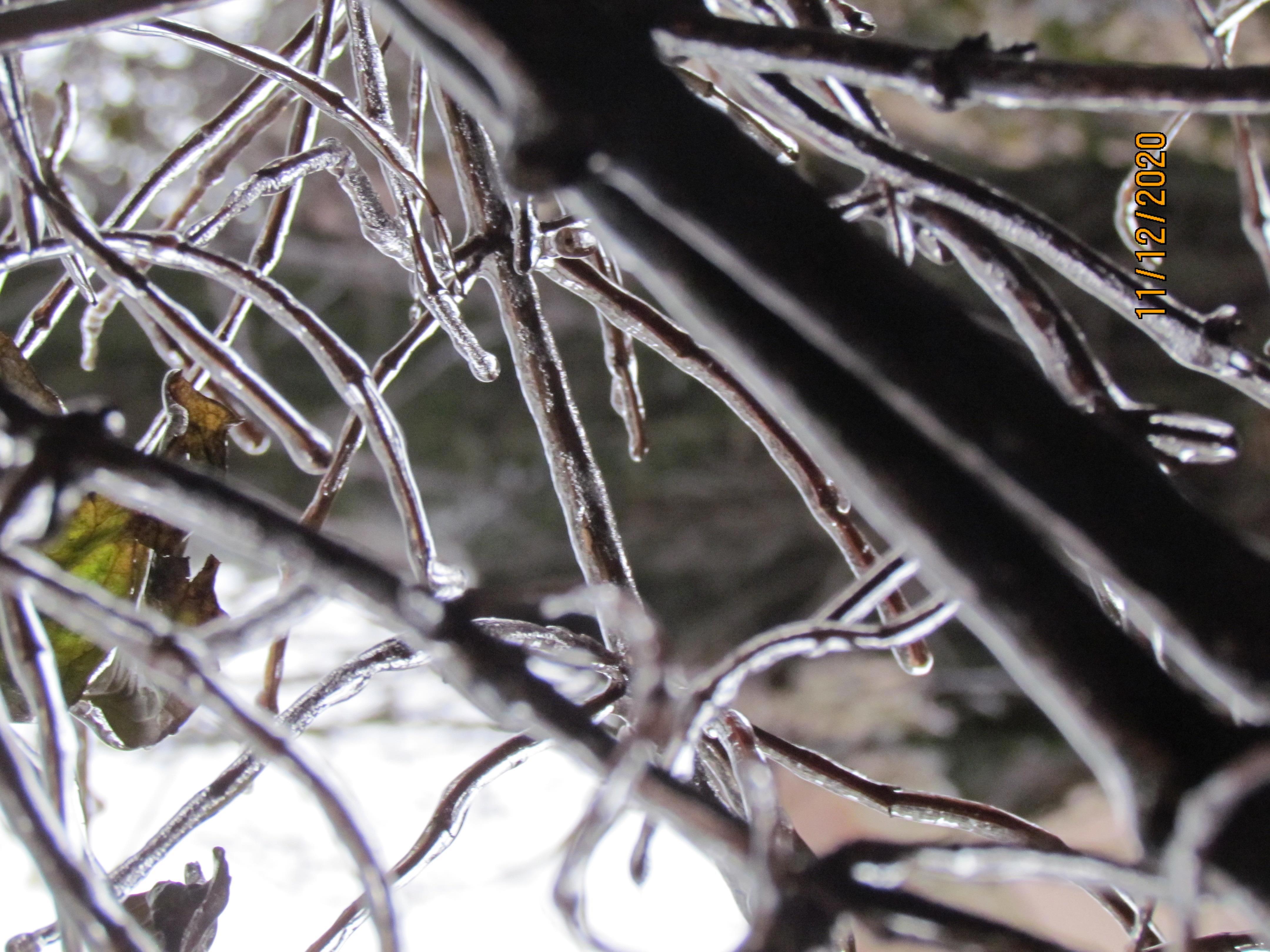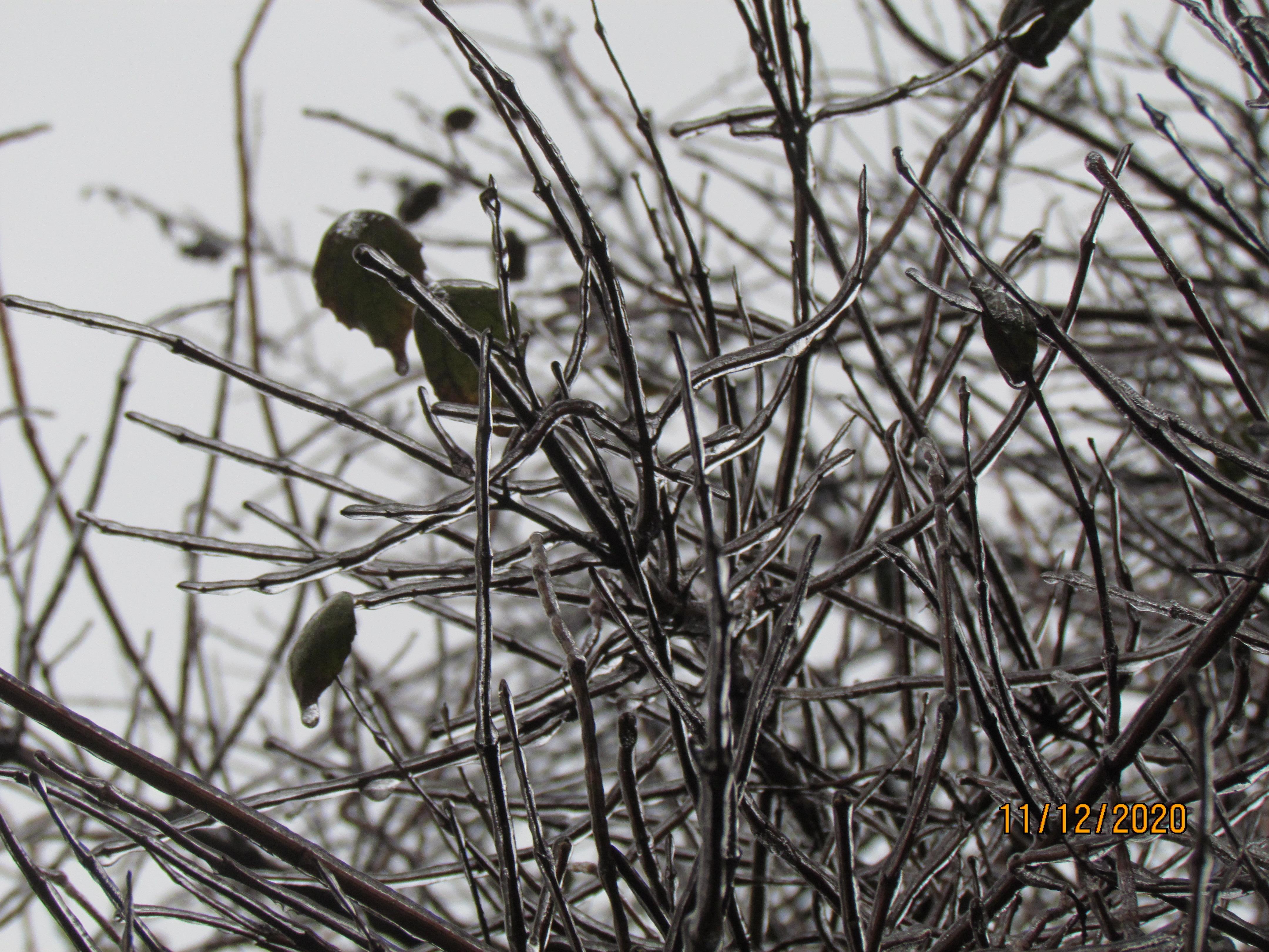 Декабрьский гололёд, хрустальные кусты-древеса.