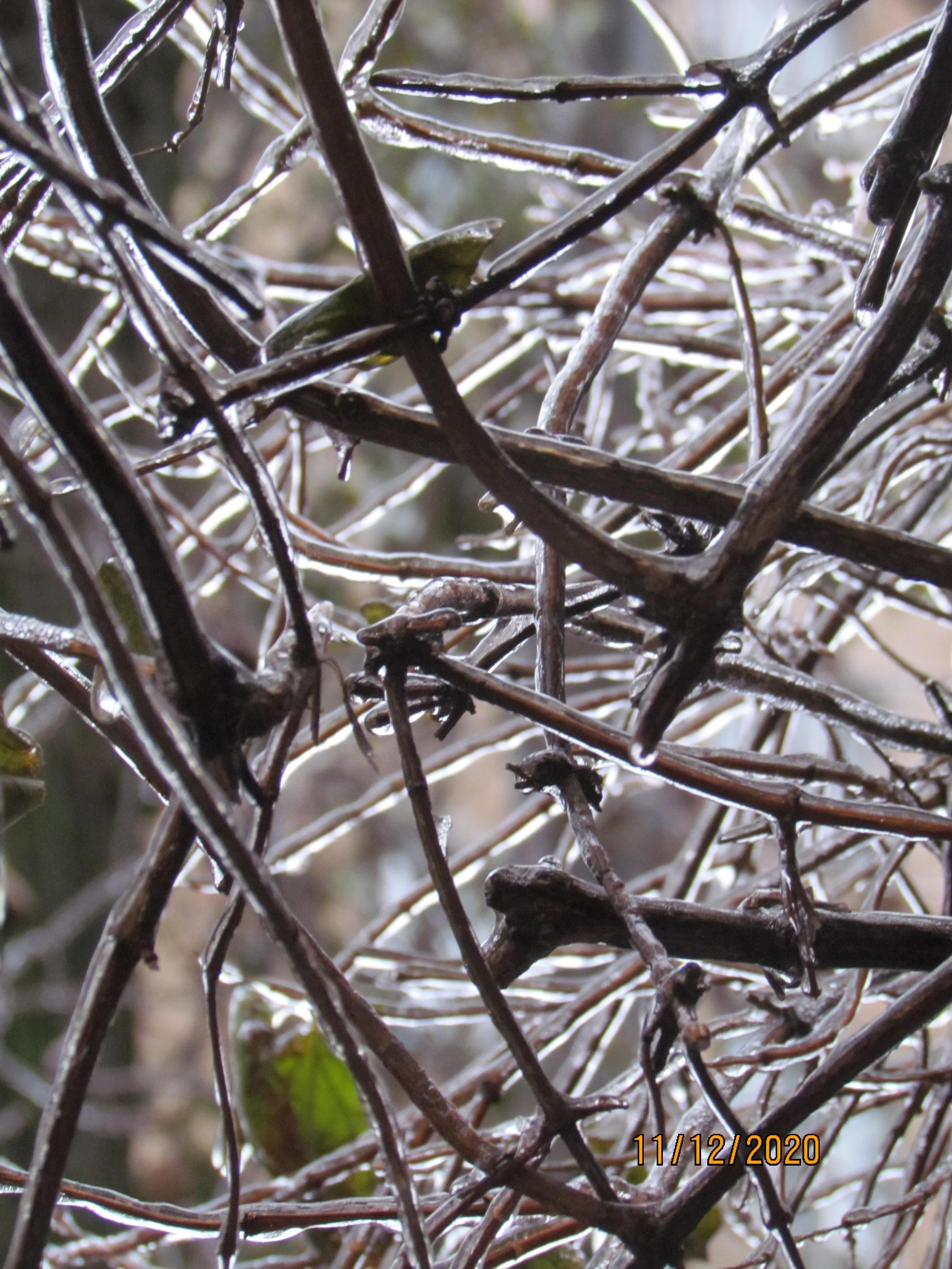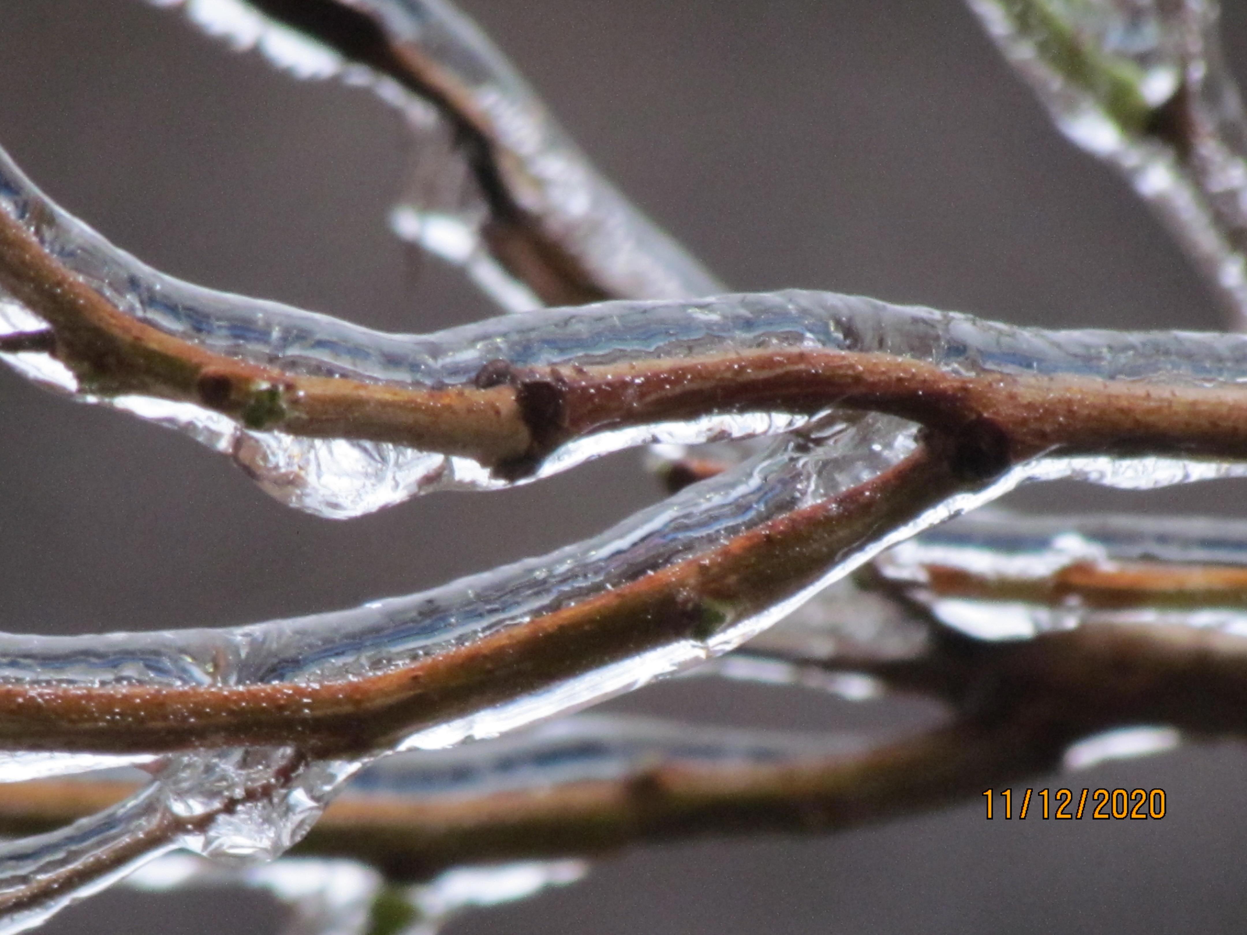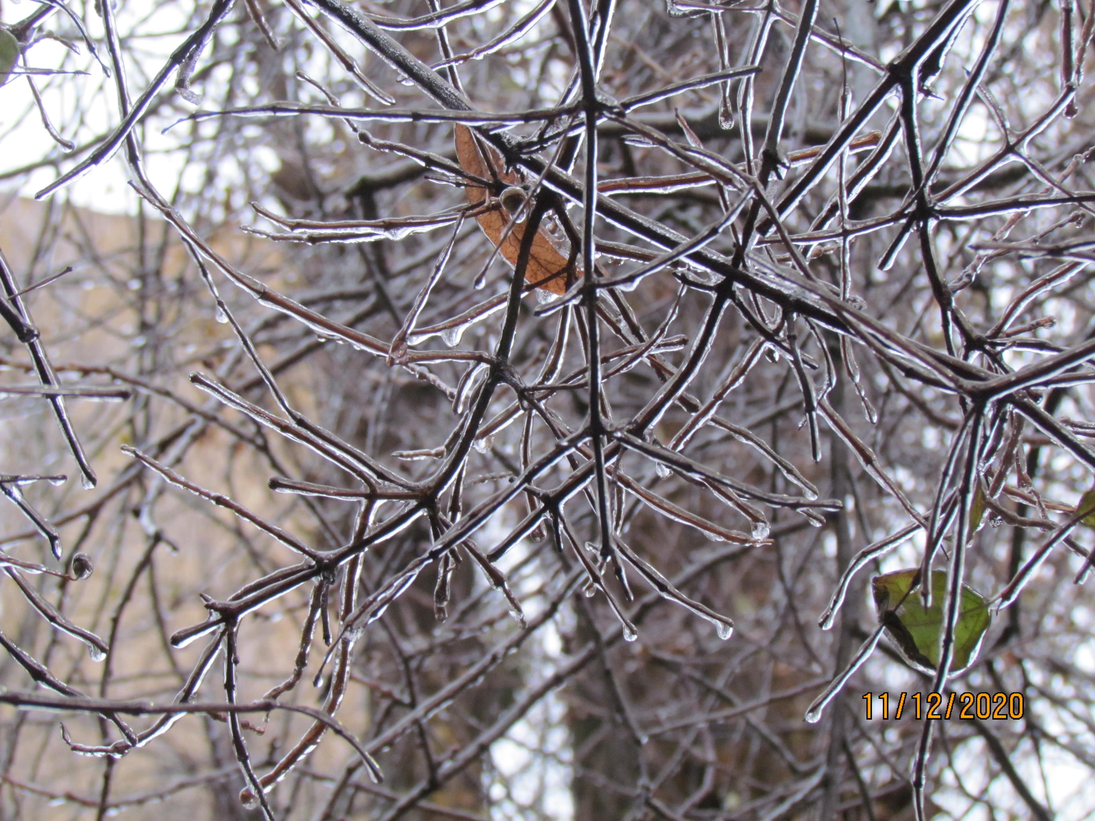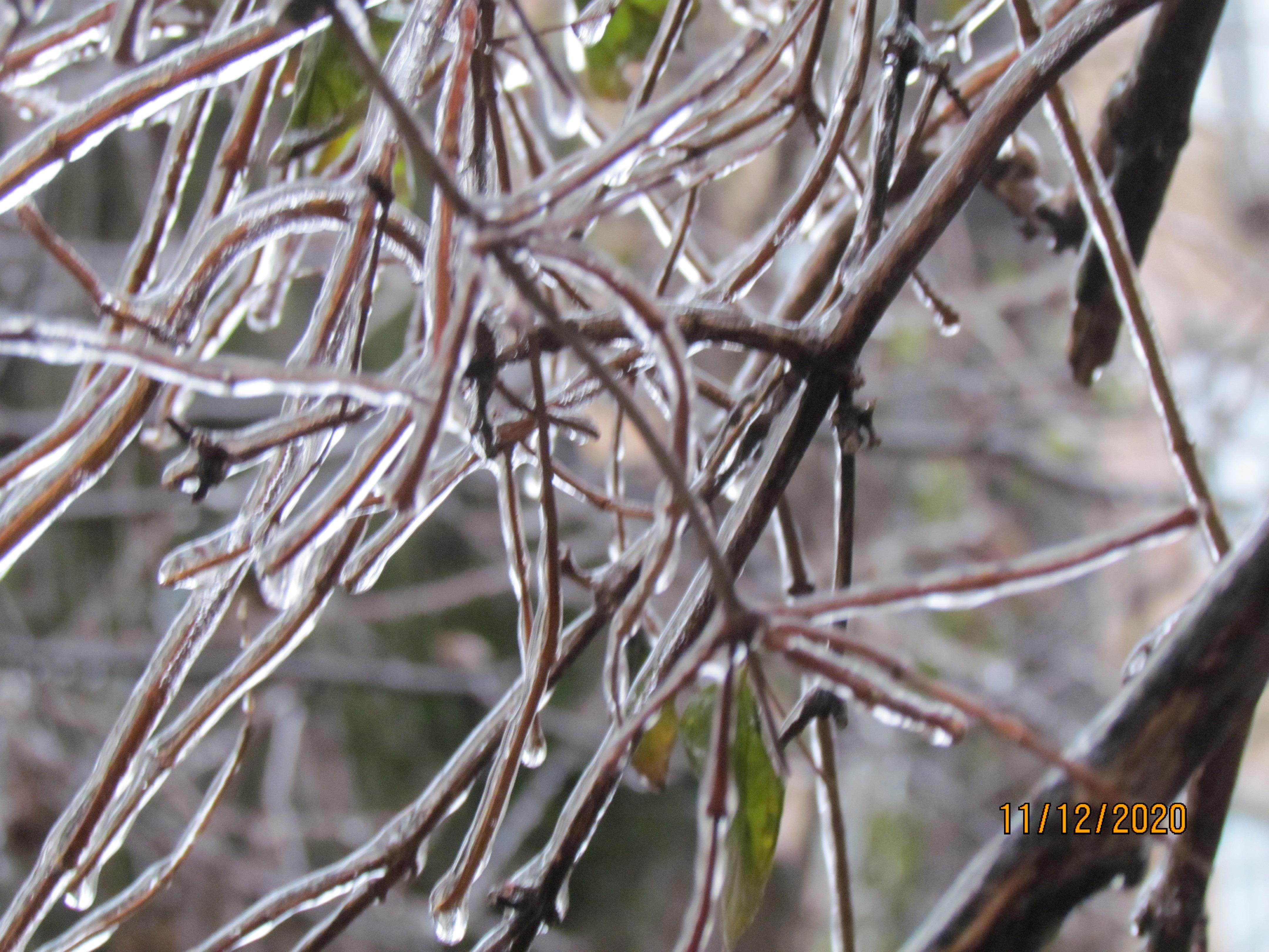 Декабрьский гололёд, хрустальные кусты-древеса.