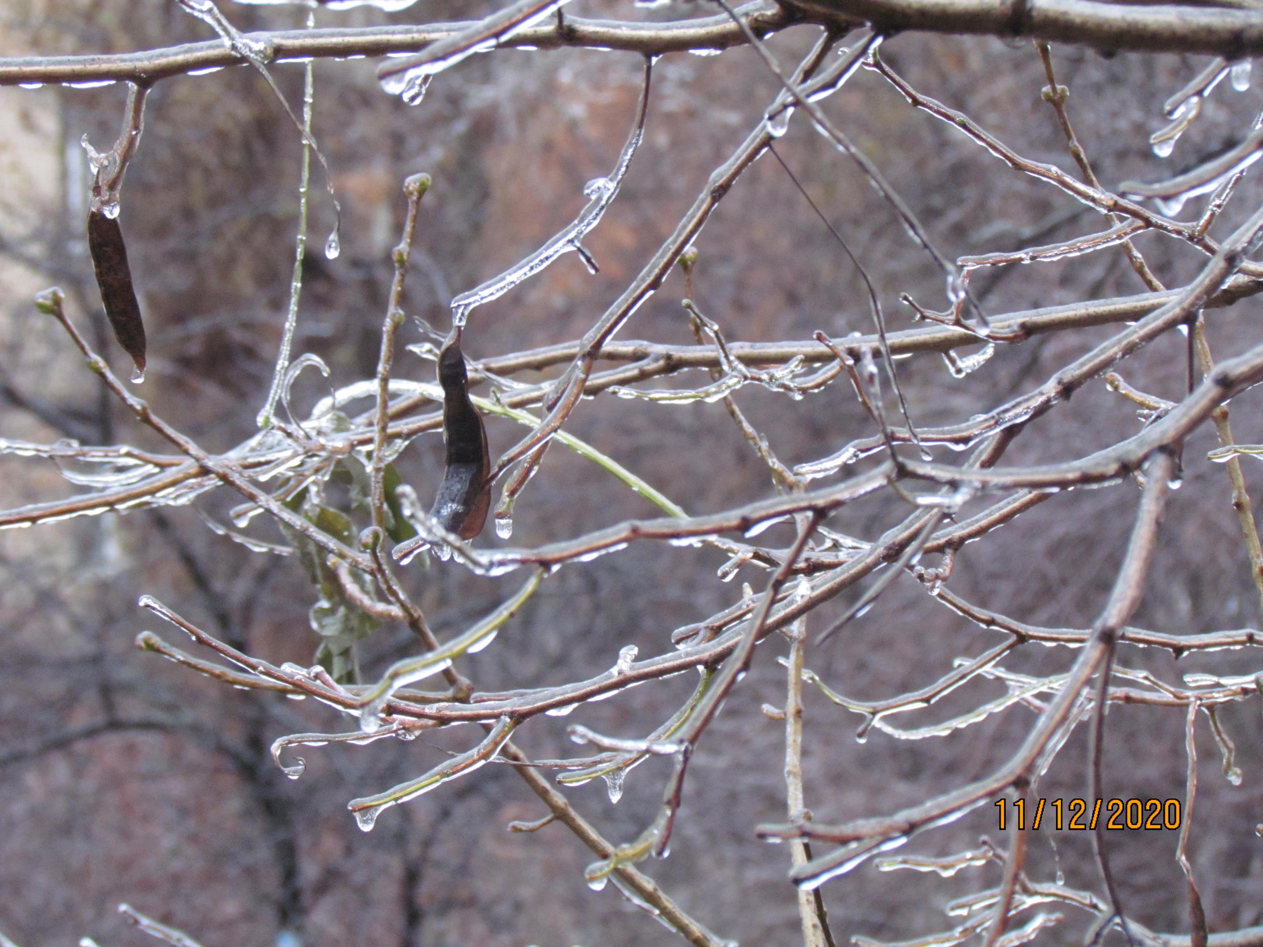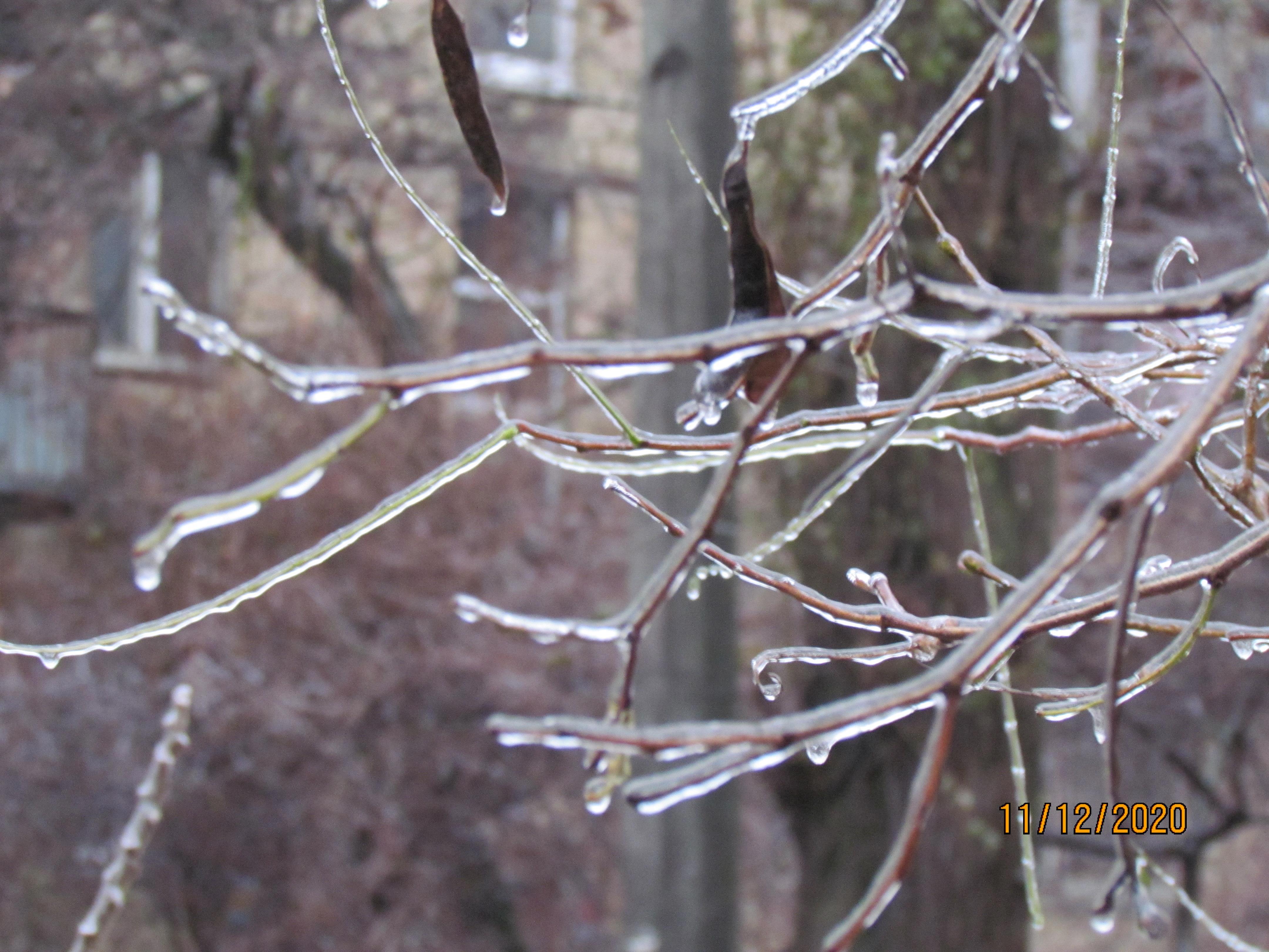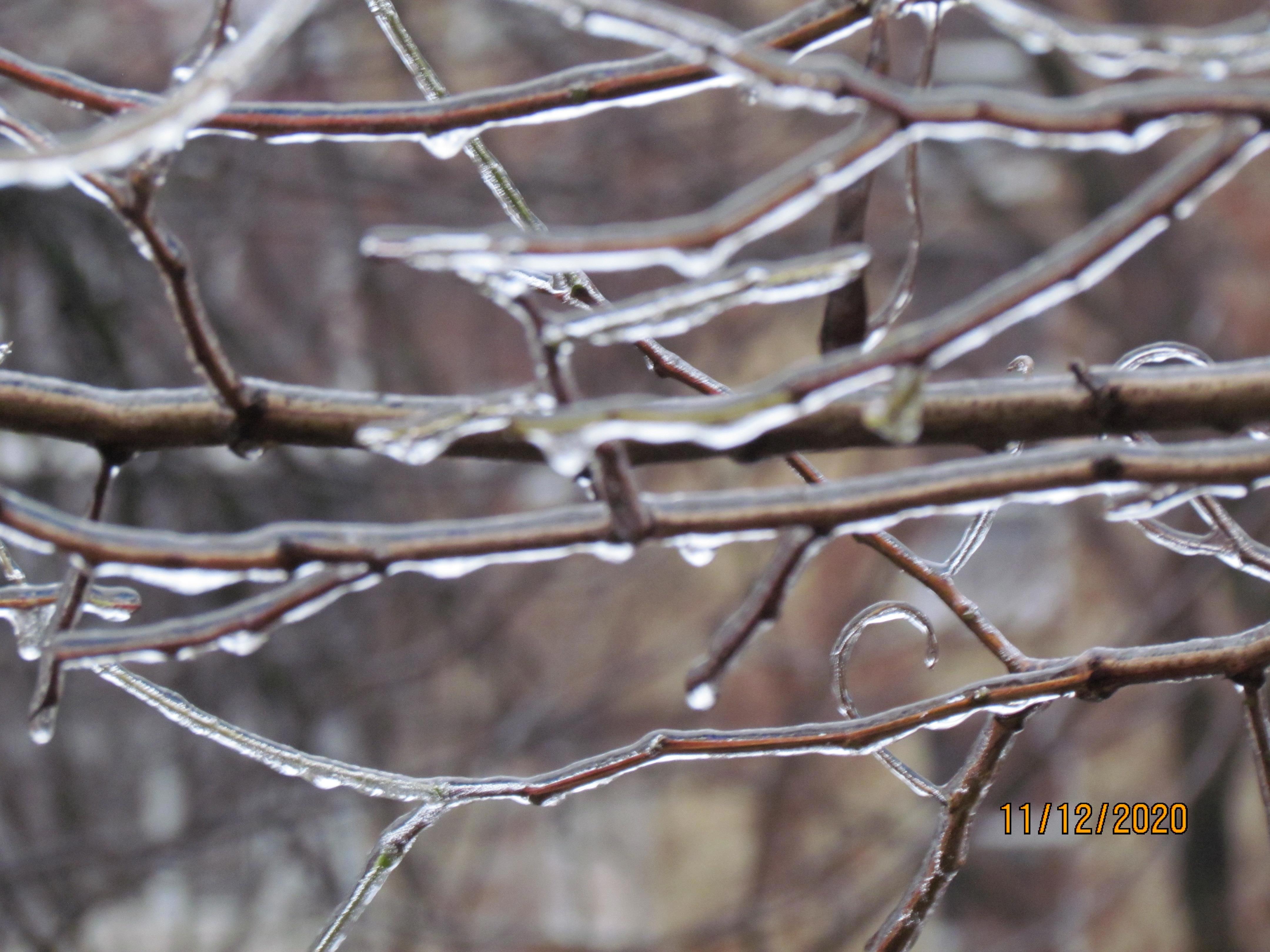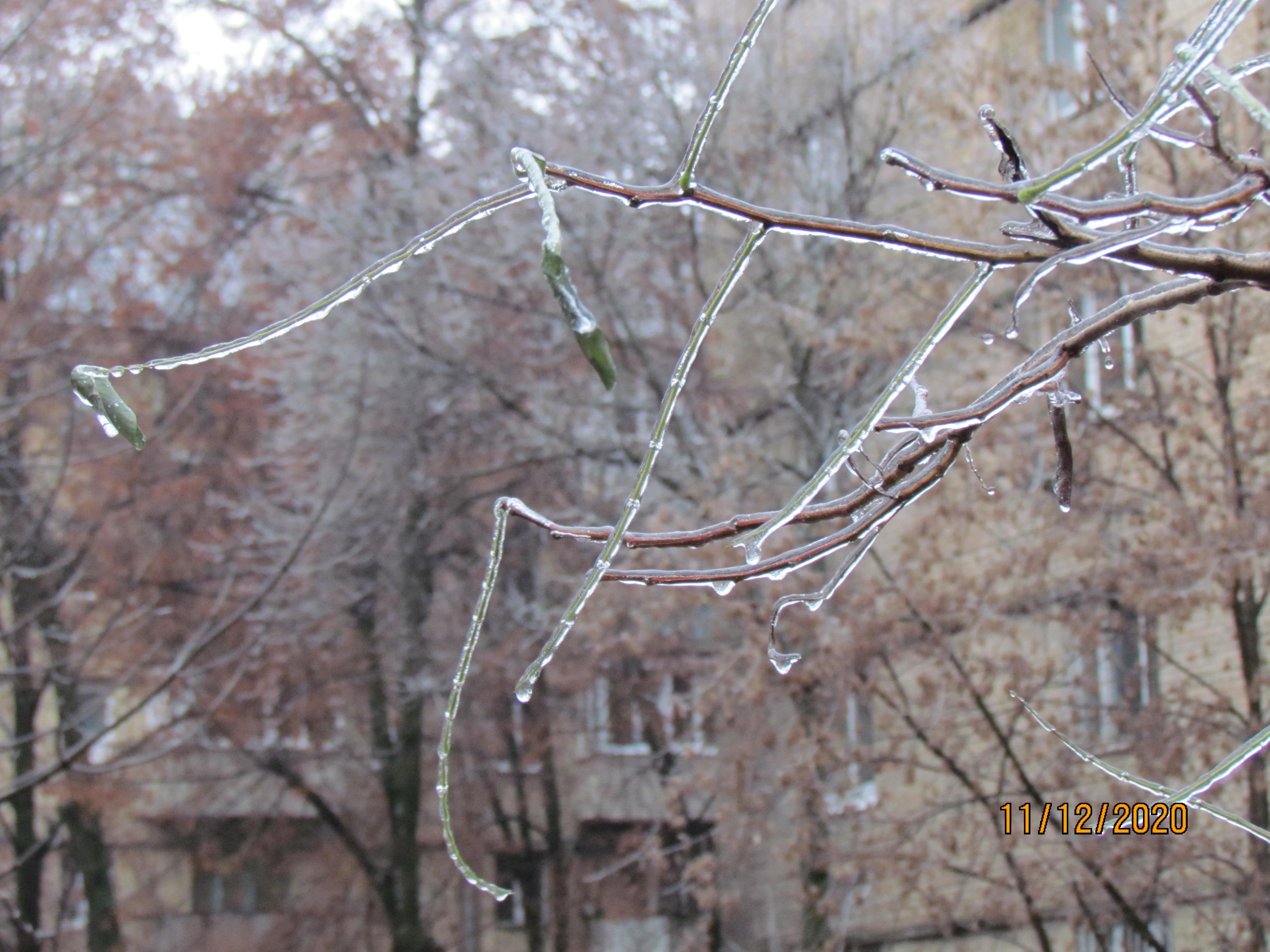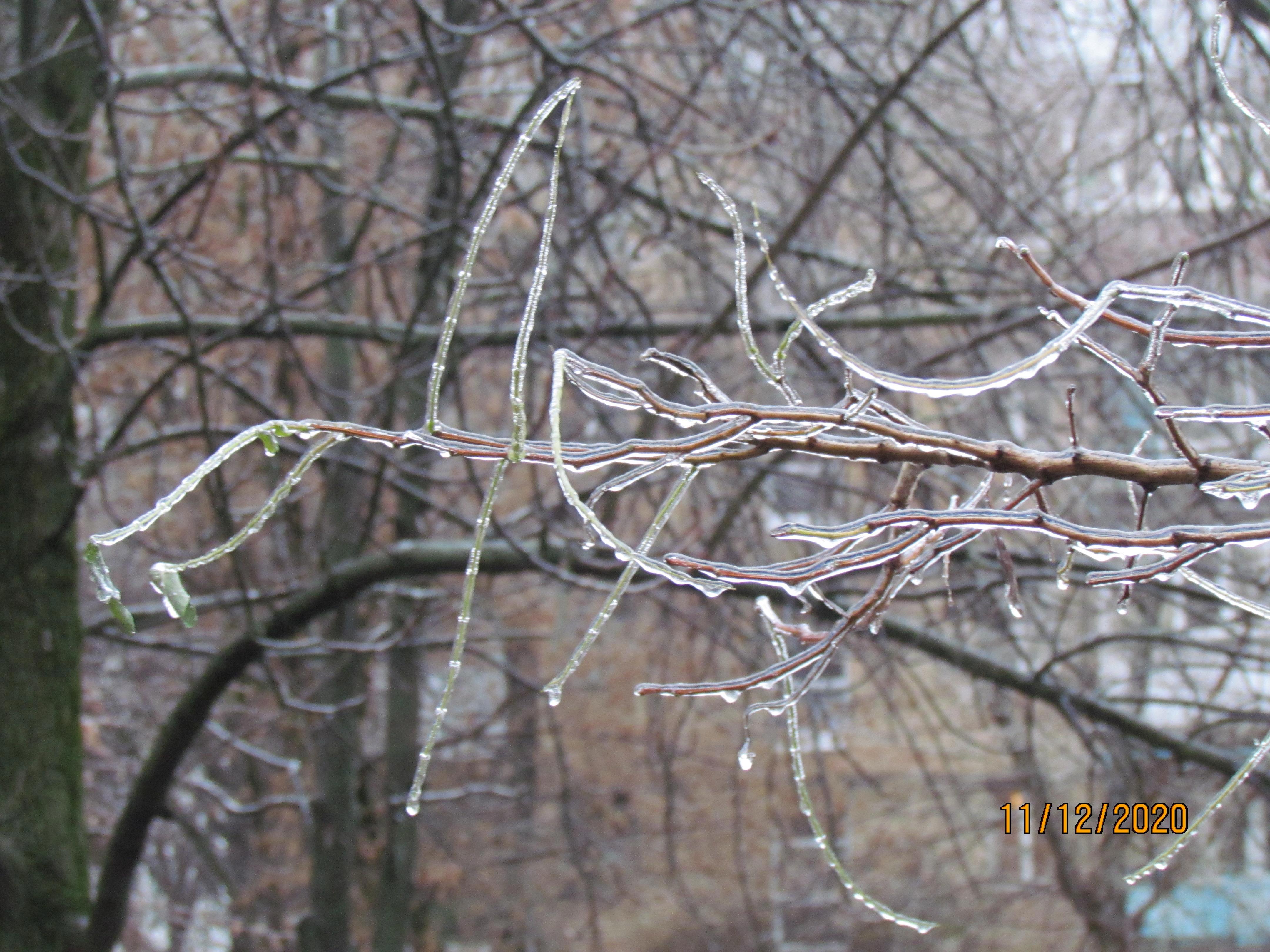 Декабрьский гололёд, хрустальные кусты-древеса.