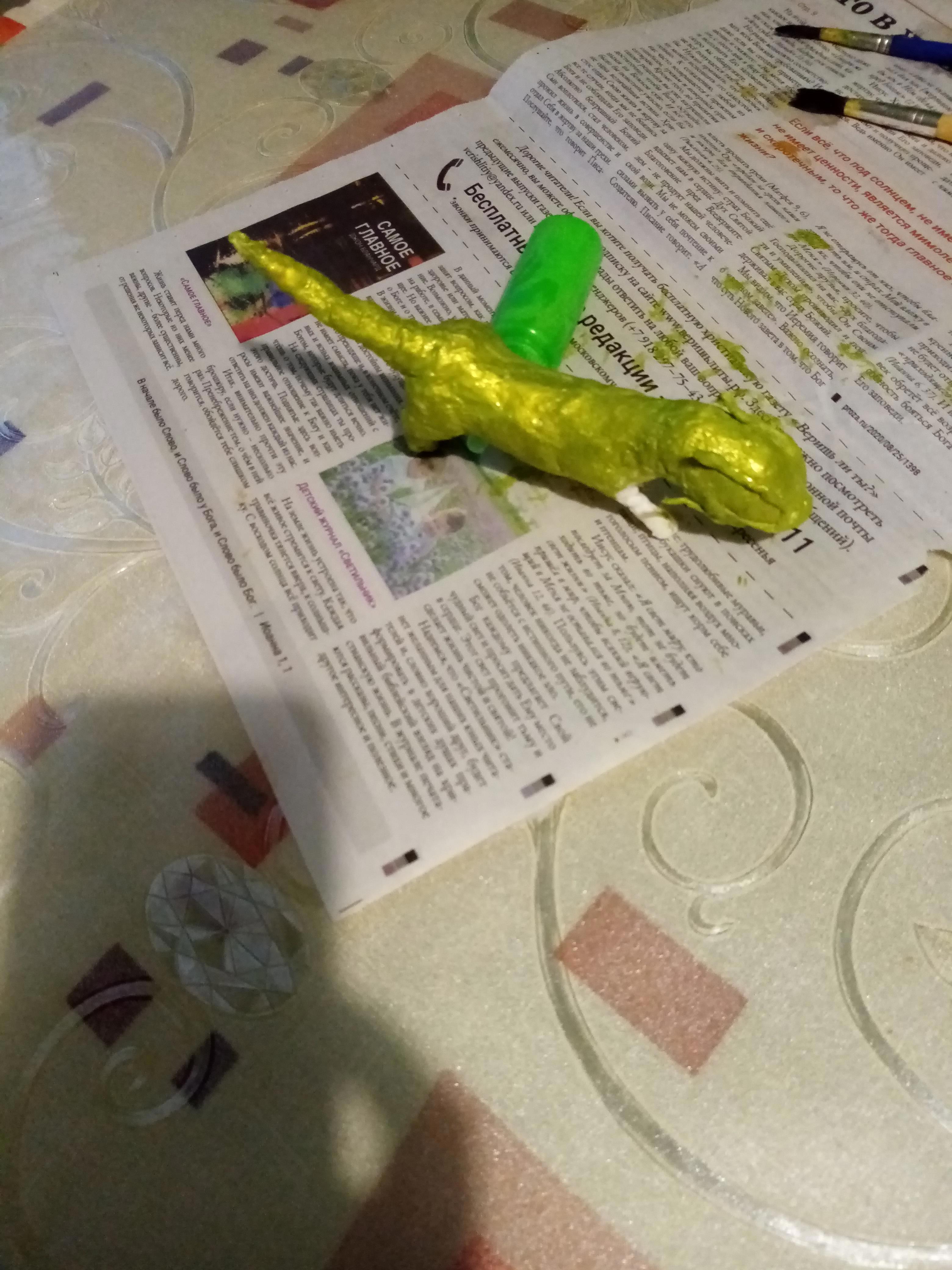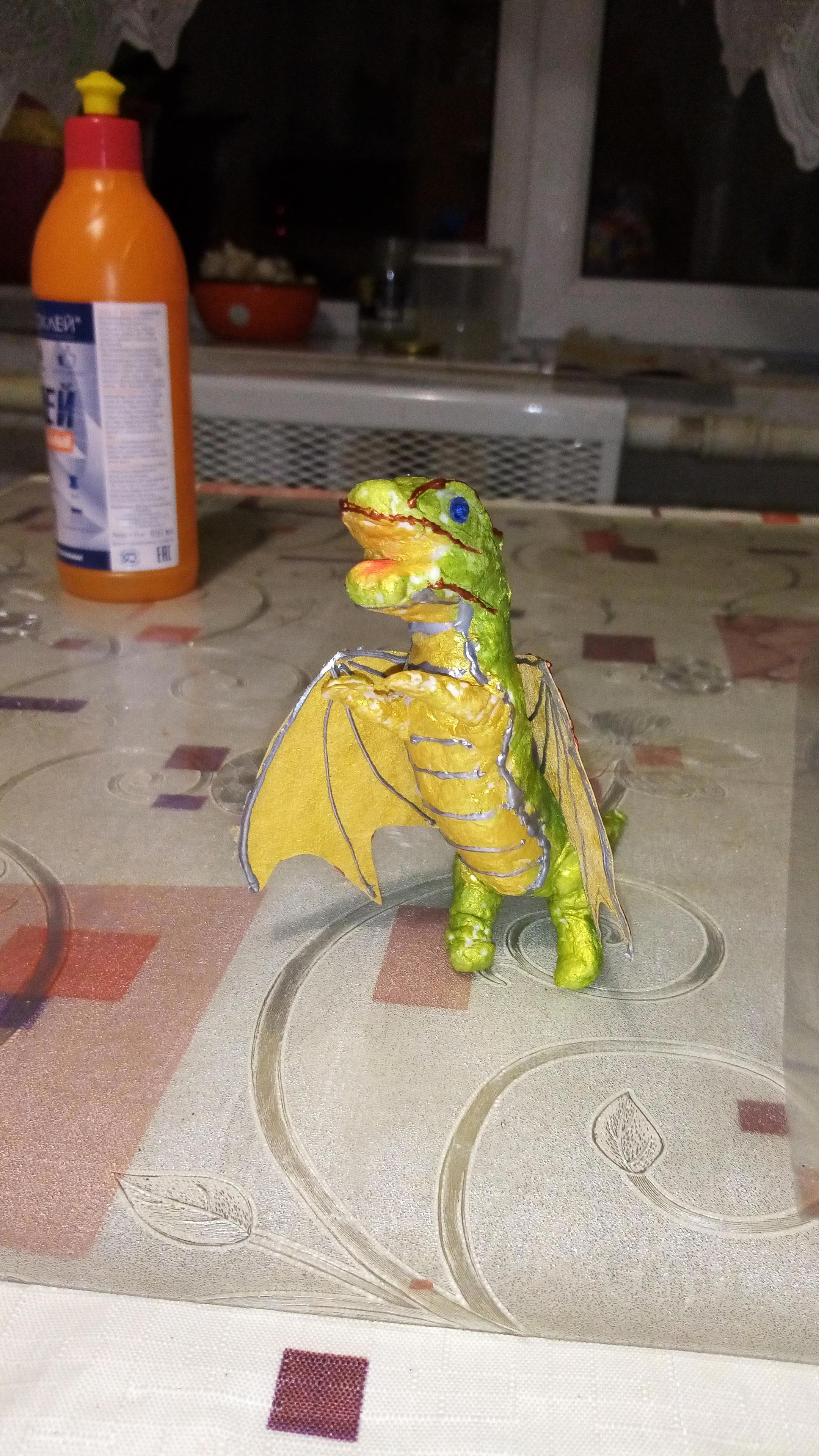 Крылья из окрашеной с двух сторон влажной салфетки. Дракончик получился очень милый.