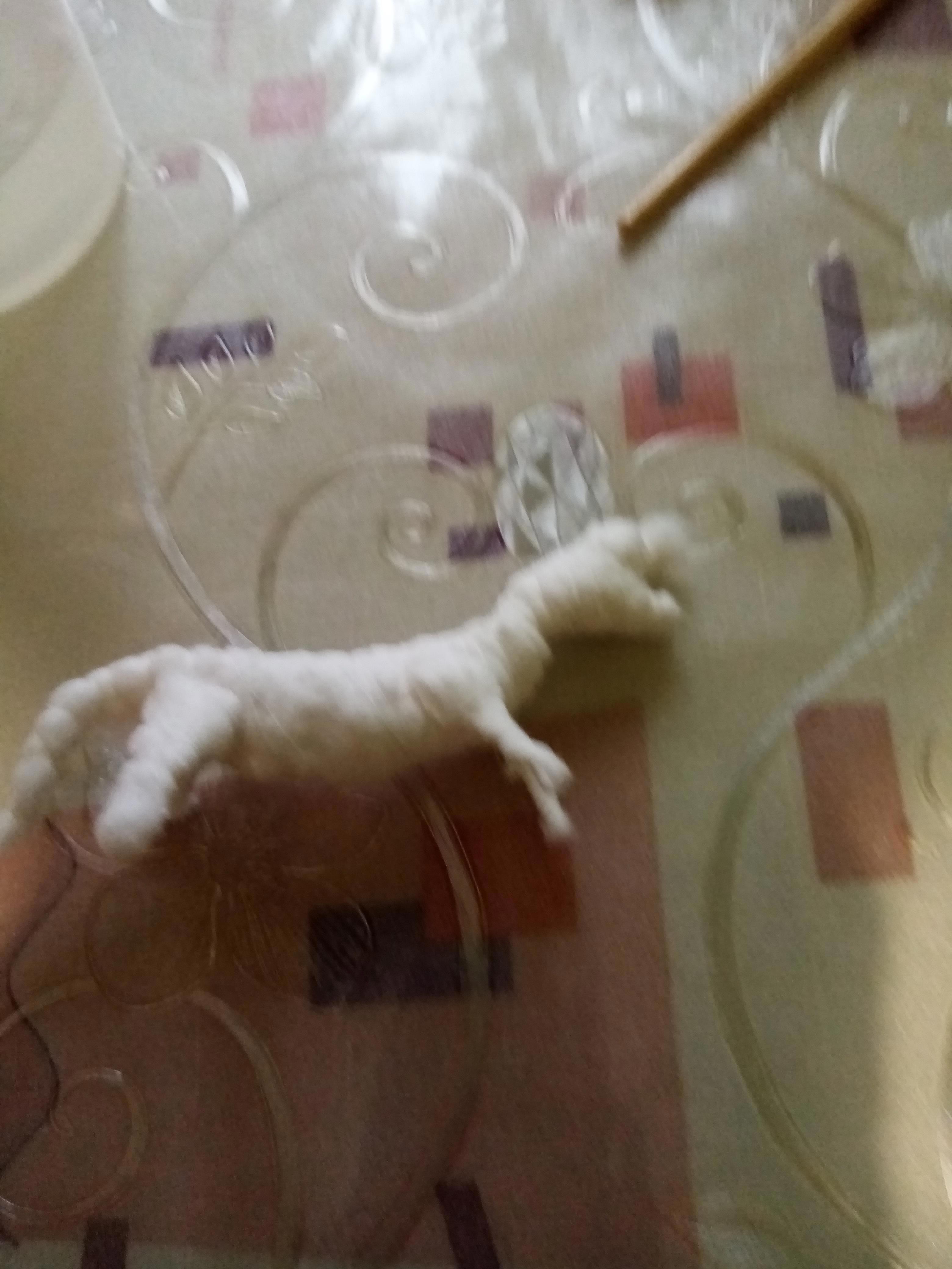 Это я ему приклеила рожки и усы.
