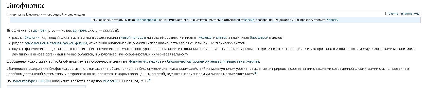 Только вот незадача: Википедия даёт сложное определение биофизики, адептом которой упоминаемый чел, помешанный на ЕГЭ, себя позиционирует: