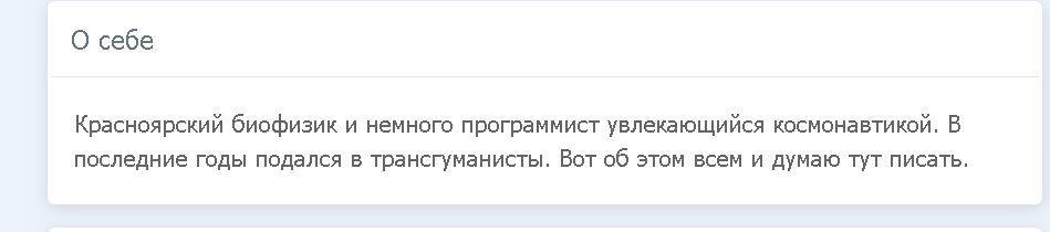 Итого, человек, позиционирующий себя как биофизик и программист, не знает элементарных вещей. И при этом - огульно полагает, что все жители РФ и постсоветского пространства непременно сдавали приснопамятный ЕГЭ. Хотя, если из биофизиков он "подался" в некие "трансгуманисты"... всего лишь "интересующиеся" космонавтикой...