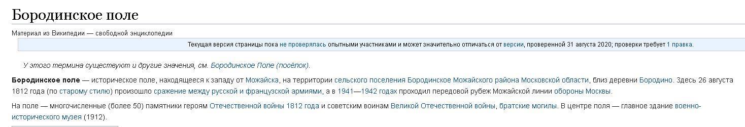 Ладно, я привык себя перепроверять, потому полез в Сеть, уточнять, где же реально по мнению семи миллиардов землян находится это Бородинское поле.