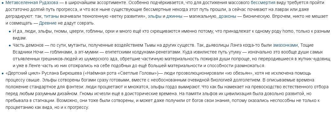 Автор: Руслан БирюшевОказывается, моё фэнтези упоминается в энциклопедии posmotre.li даже дважды. Второй раз - в статье "Происхождение фэнтезийных рас". И эту заметку написал не тот же человек, что написал о Вэлрии и Даллан, как я выяснил. Значит, два автора правок независимо друг от друга решили написать о цикле в энциклопедии - это уже не совсем пустячок, и всё ещё приятно ^_^