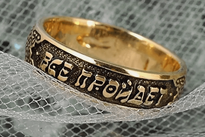 Шли дни, годы, царь смотрел на кольцо и его состояние менялось. В радости, прочитав надпись, он тут же понимал, что это проходящее. Горе, благодаря кольцу, так же проходило.