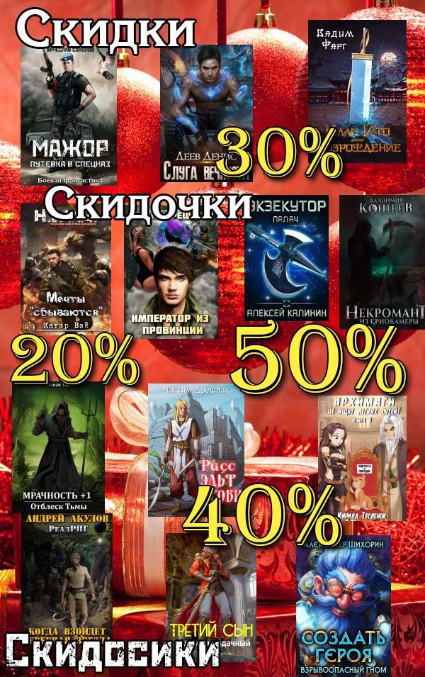 Автор: Катэр ВэйПриветствую вас читатели портала Автор Тудей. Мы тут с коллегами из творческого объединения TGB - Т.О.П. (Литрпг/Фантастика/Фэнтези) решили сделать много скидок От сейчас... до самого Нового Года! Так сказать, перед Новым Годом дать чутка сэкономить... На колбаску И да... нас 13 получилось.