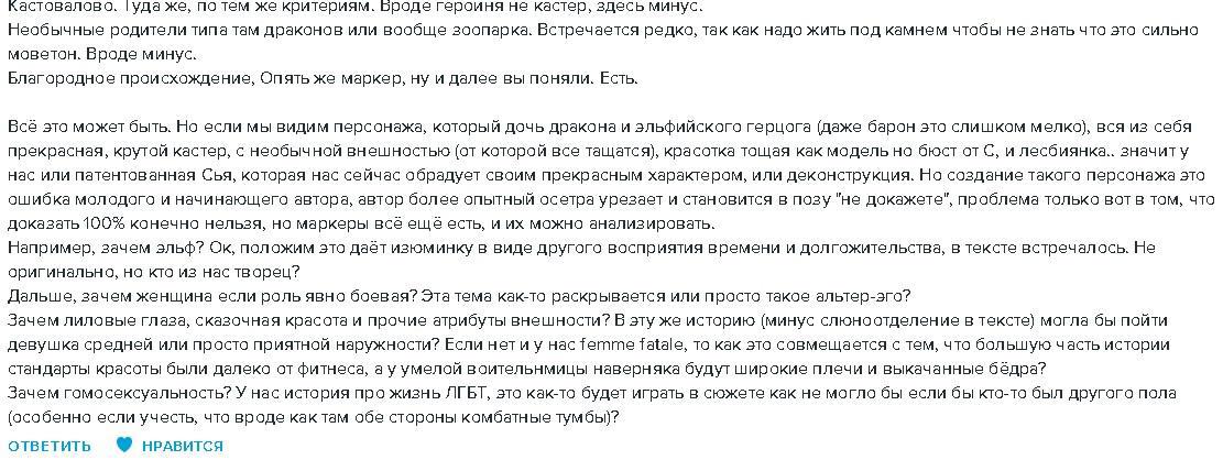Замечания, обещанные в начале. Первое - судя по "протагонист - женщина" и "протагонист - эльфийка", уважаемому критику-детективу не знаком сложный даже в произнесении вслух термин "девтерагонист", так как в романе означенная эльфийка является напарницей главного героя.