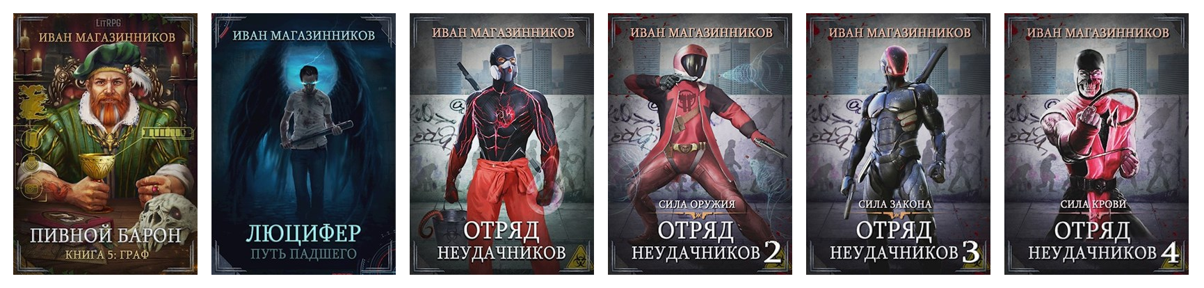 Закончил финального 5-го "Пивного Барона", наконец-то дописал долгостройного хулиганского "Люцифера" (не прошло и 2 лет) и начал новую серию "Отряд Неудачников", в которой написано уже 3,5 книги.
