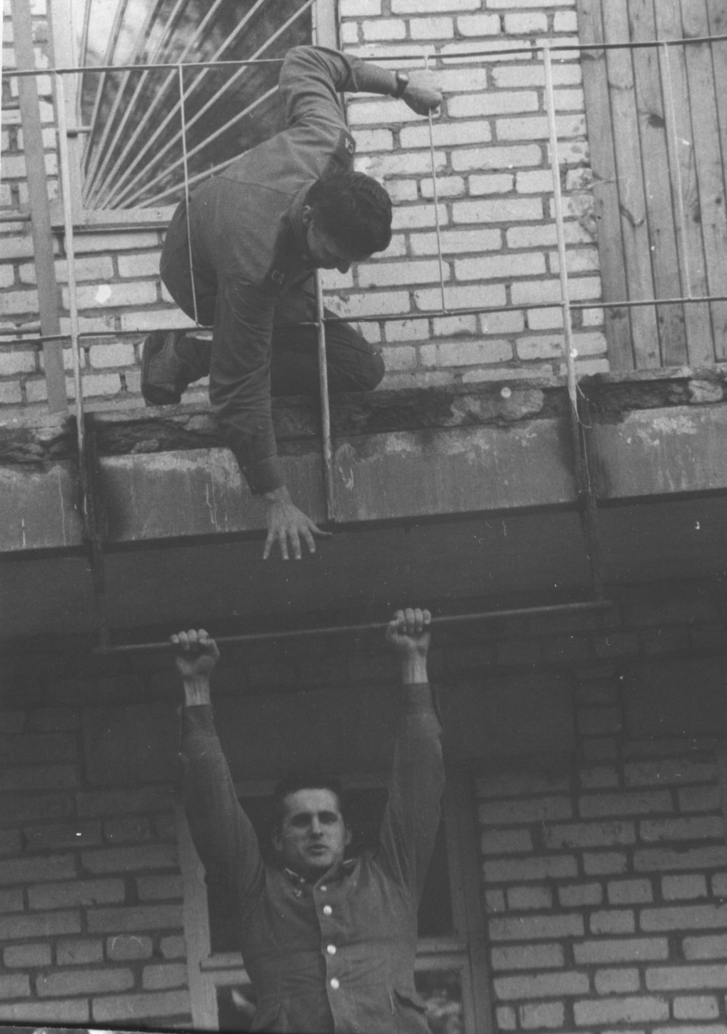 Рабочее место я себе оборудовал как мог, друзья-художники тоже помогали, испытание турника, ТБ на страже:)