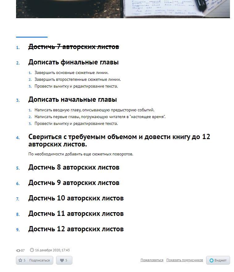 Хочу с НГ открыть на сайте новую цель — редактура и доработка книги «Храм духа и плоти». Составлю список пунктов, буду их отмечать и публиковать анонсы. Текст книги уже готов (730 тысяч символов), осталось его довести до ума. Потом буду писать другую книгу, и тоже хочу создать цель на том сайте. А уже оттуда — вести ссылками на АТ. Как поняла, там это не запрещено, так как пользователи с удовольствием кидают ссылки на Ридеро, Литрес и другие сайты.