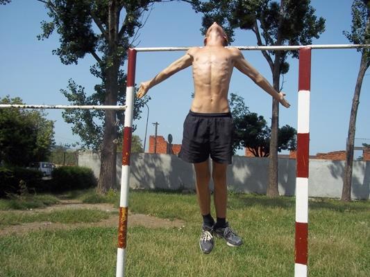Мы с Тимаком относились к особо продвинутым, поэтому осваивали ещё подъём разгибом (так называемая «склёпка») и подъем махом назад («замок»). Это, когда делаешь из виса сильный мах назад и в высшей точке подъема прямыми - это важно! - руками совершаешь движение, словно опускаешь турник себе на пояс. Как гриф штанги. Если всё сделать правильно, то окажешься сверху на турнике. Испугаешься или согнёшь руки – ничего не выйдет.