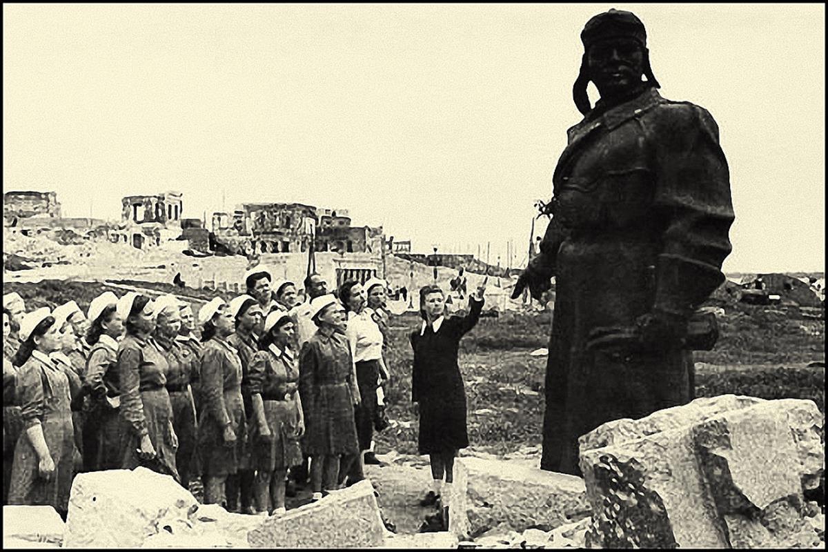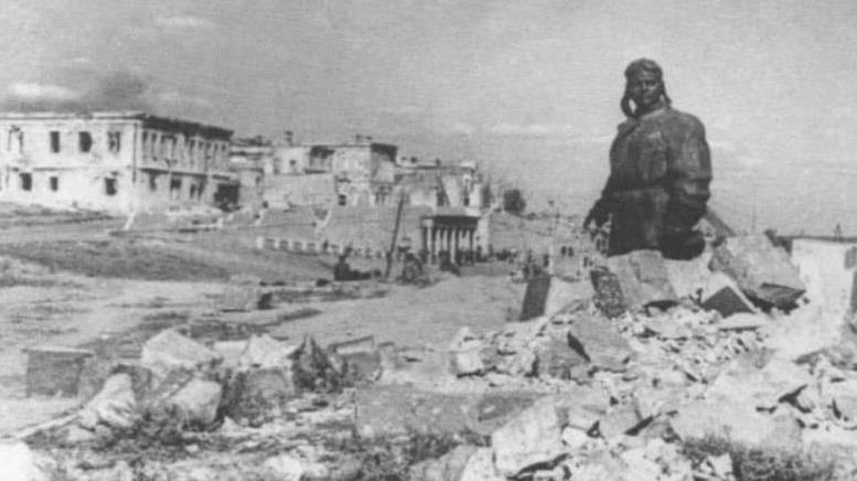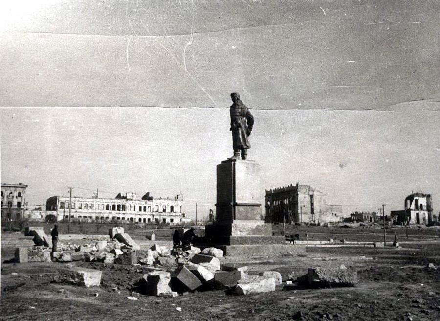 Затем начались бои за Город, и памятник оказался в месте самых ожесточённых сражений - совсем рядом Волга, к которой так рвались нацисты. Вот что творилось рядом с ним: