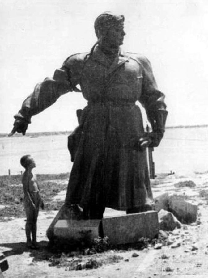 Памятник выдержал всё: и бомбёжки, и бои. Лишь в 1943 году разорвавшийся поблизости снаряд разрушил его постамент, но сама фигура лётчика не пострадала. Советские солдаты укрепили "Неповерженного" обломками и так он простоял вплоть до начала строительства новой Набережной - до 1949 года: