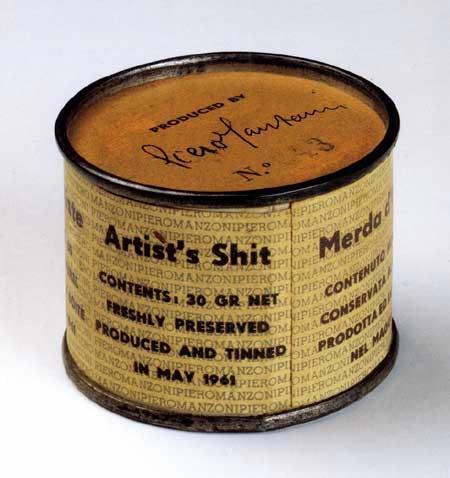 Кстати, кучка экскрементов, с успехом выдаваемая публике за предмет искусства, — это вовсе не тенденциозное преувеличение, не злобный наговор: в мае 1961 года итальянский авангардист Пьеро Мандзони сначала запаял (причём даже не ремесленным, а именно промышленным способом) в 90 консервных банок свои экскременты и затем продал их "любителям искусства". Все эти банки имеют надпись на четырёх языках "Дерьмо художника".