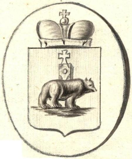 Но улыбался зверь недолго. В конце XVIIIвека началась работа над официальными гербами губерний Российской империи. Вот один из эскизов пермского герба.