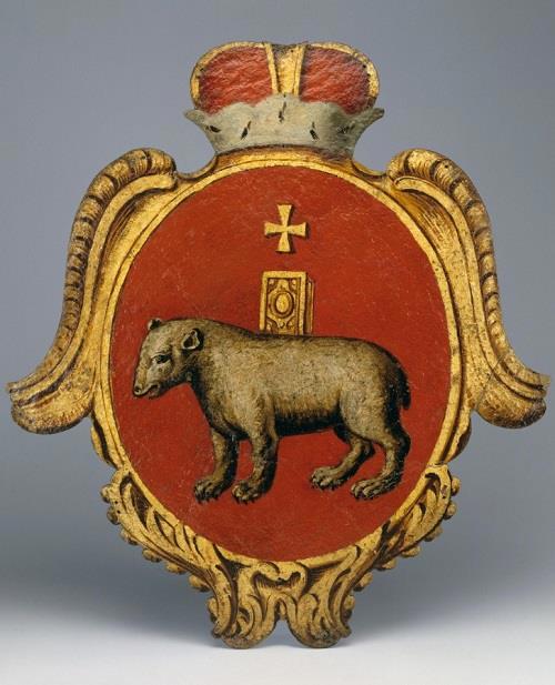 Не сильно удался косолапый и авторам пермского герба, нарисованного для похоронной процессии Петра I в 1725 году.
