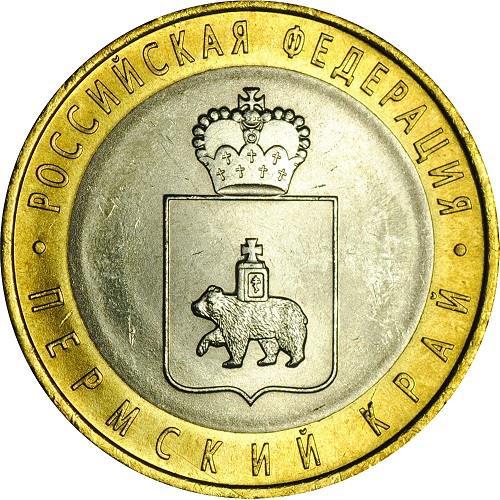 А это – памятная монета в 10 рублей с пермским гербом, выпущенная Центробанком в 2010 году.