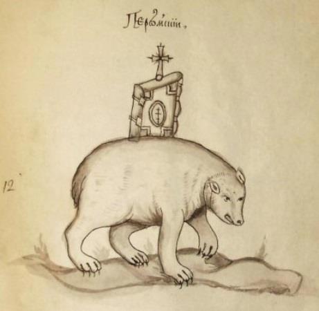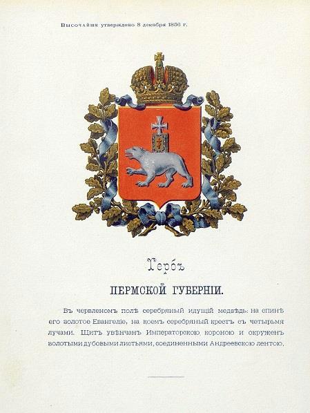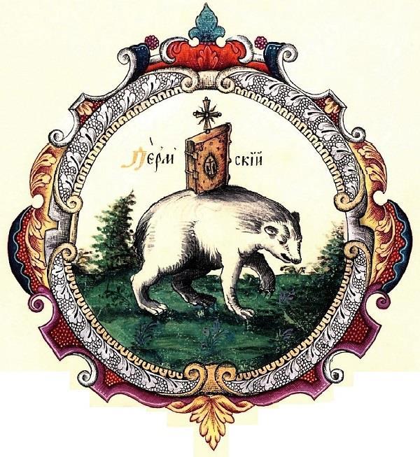 Автор: Вадим Нестеров aka Сергей ВолчокХотя в сопроводительном тексте действующего пермского герба говорится, что «серебряный медведь — символ природных богатств, окружающих город бескрайних земель», а «Евангелие (Золотая книга) — символ христианского просвещения, воссиявшая здешним обитателям», предки придерживались иного мнения. По крайней мере, официальное описание герба, принятого при Екатерине в 1783 году, гласило: «В красном поле серебряный медведь, на котором поставлено в золотом окладе Евангелие и над ним серебряный крест, означающий первое — дикость нравов обитавших жителей, а второе — просвещение через принятие христианского закона».